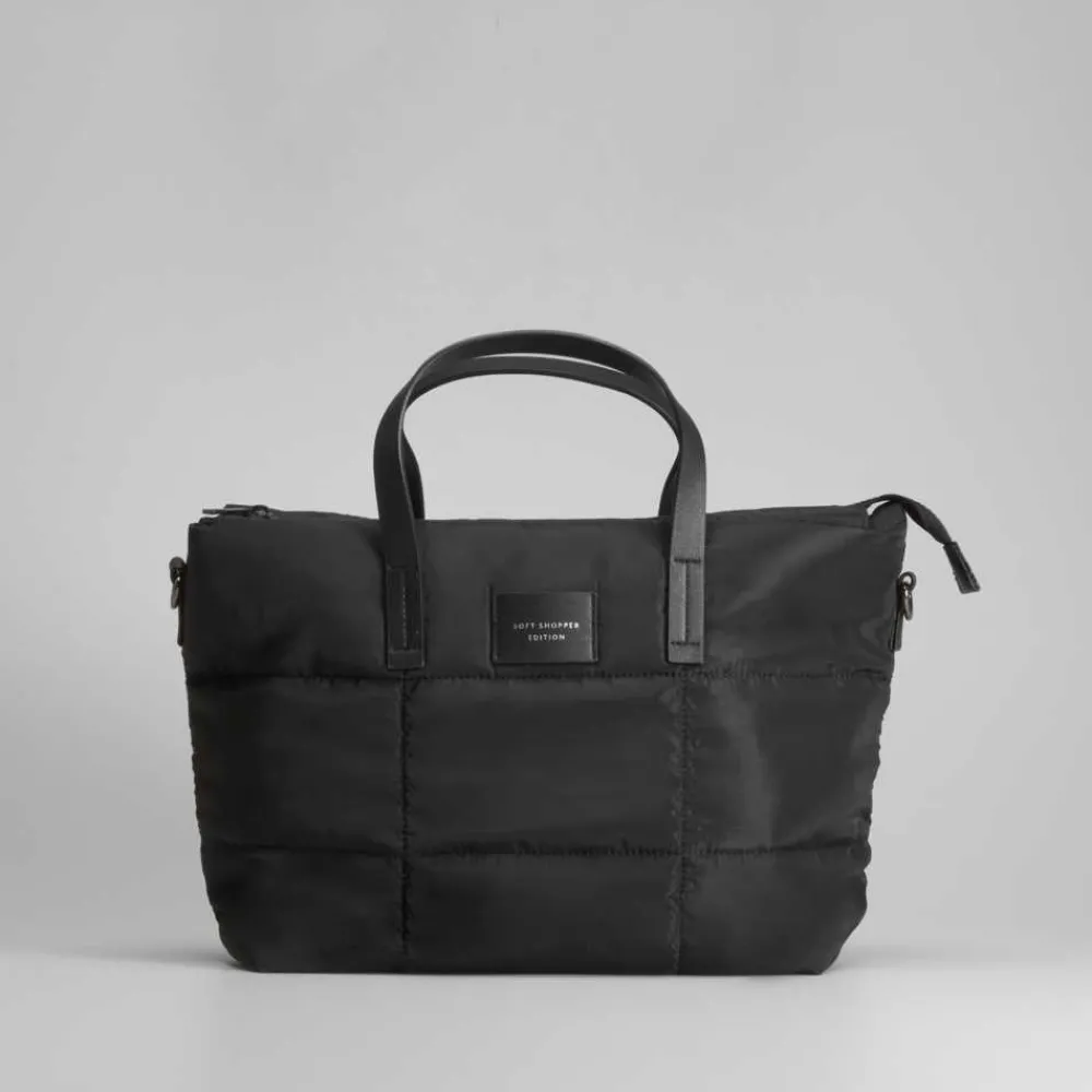 Bolso shopper de nylon con acolchado de cuadros grandes de la marca NYC para mujer. Corte en color negro con dos tiras cortas fijas y un asa largo de quita y pon.