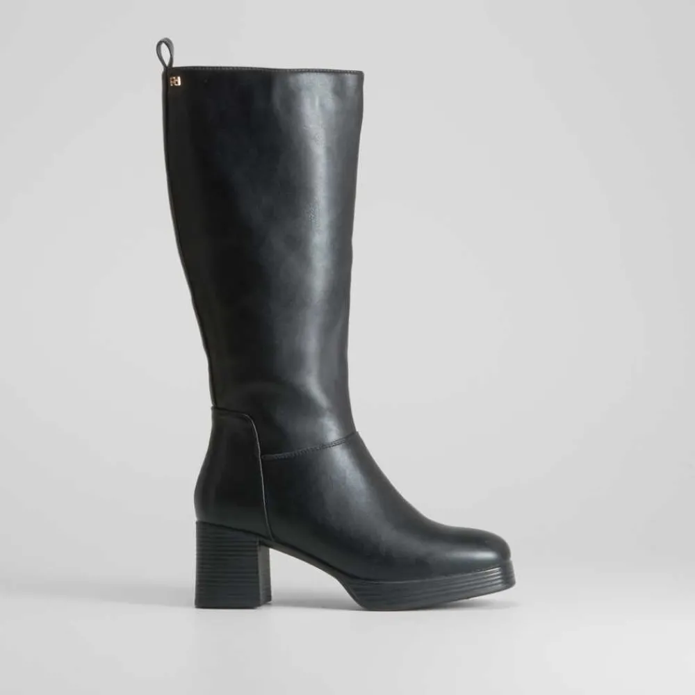 Bota alta de PICCOLA PIU en color negro, con plataforma y tacón. Ideal para looks sofisticados de temporada.