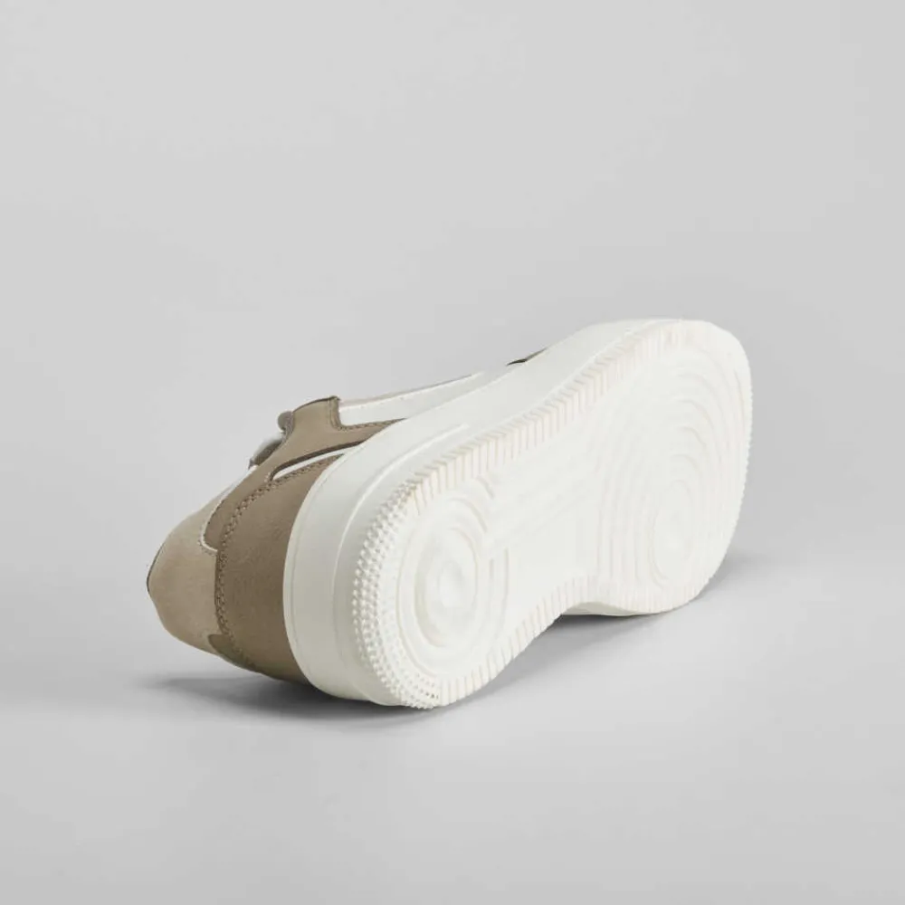Zapatilla de estilo urbano con combinación de blanco y taupe, diseñada para ofrecer una apariencia versátil y moderna. Los detalles en contraste y el perfil clásico realzan su atractivo visual y comodidad. Este modelo pertenece a la marca NYC.