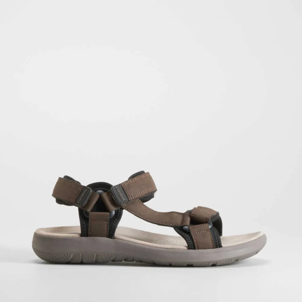 Sandalia californiana sport de la marca COMFEET para hombre. Diseño flexible y ligero con máxima amortiguación. Incorpora tres tiras de velcro para un ajuste óptimo del contorno del pie.