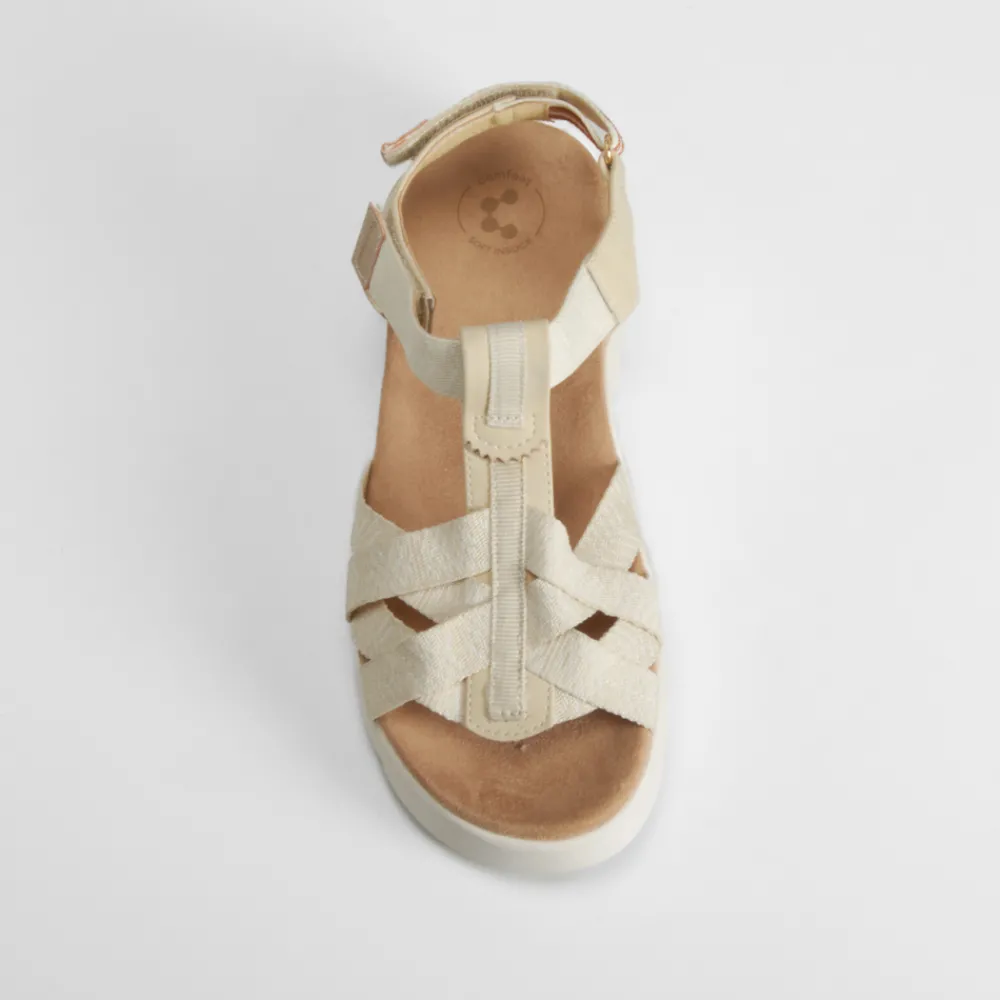 Best Sandalia cuña tiras beige Mujer Sandalias Cuña|Sandalias Confort