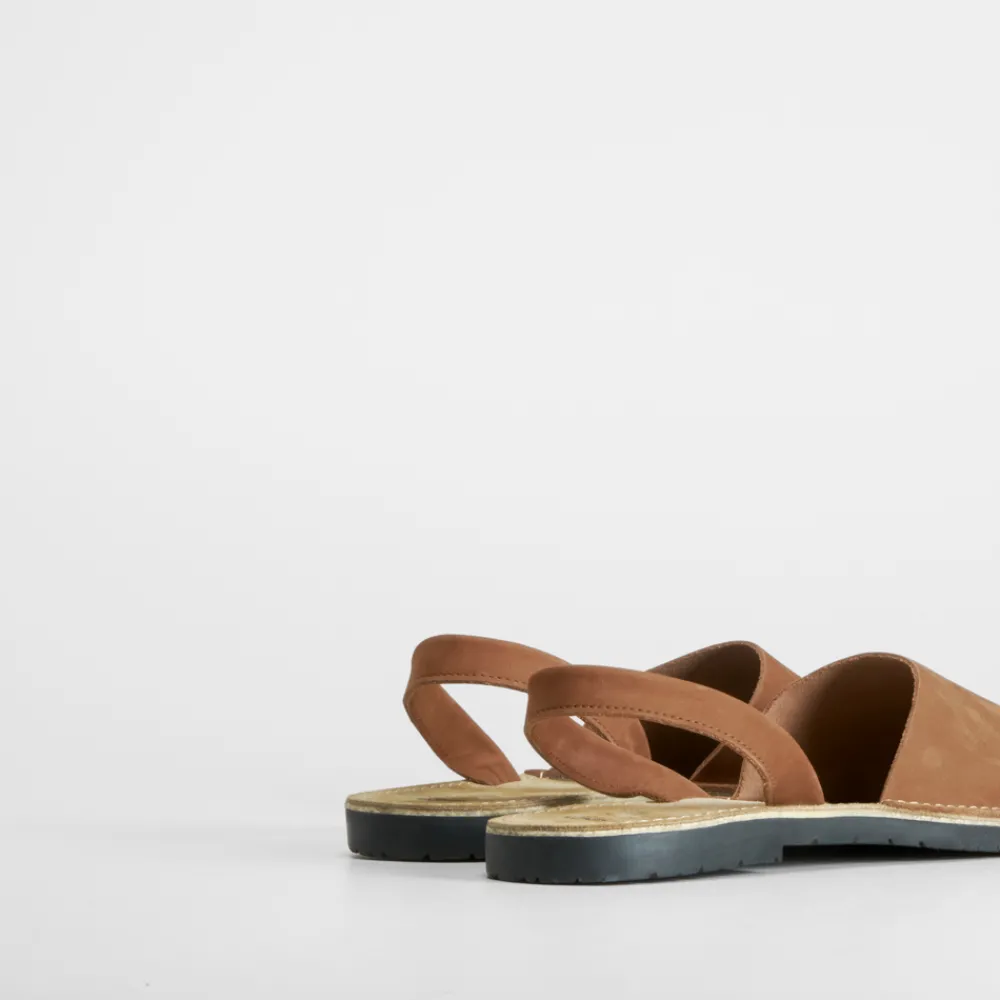 Sandalia menorquina básica de SENDA ROAD para hombre. Exterior en piel en color camel, taupe y marino.