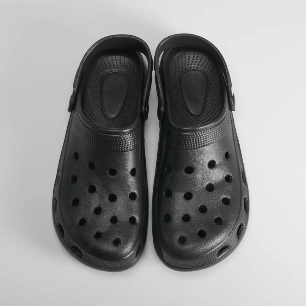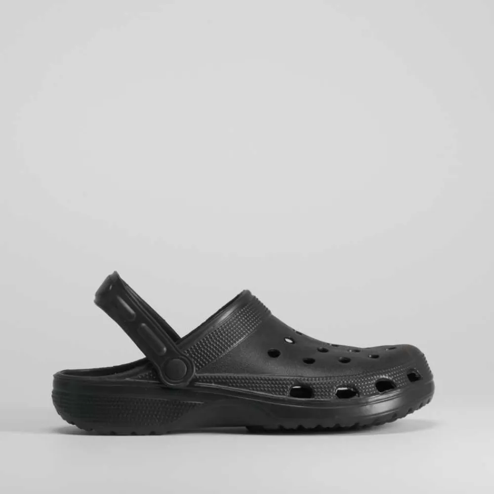 Zueco negro de playa para hombre de la marca COCONUT DRIVE. Modelo en eva con perforados y una tira trasera para mayor sujeción.
