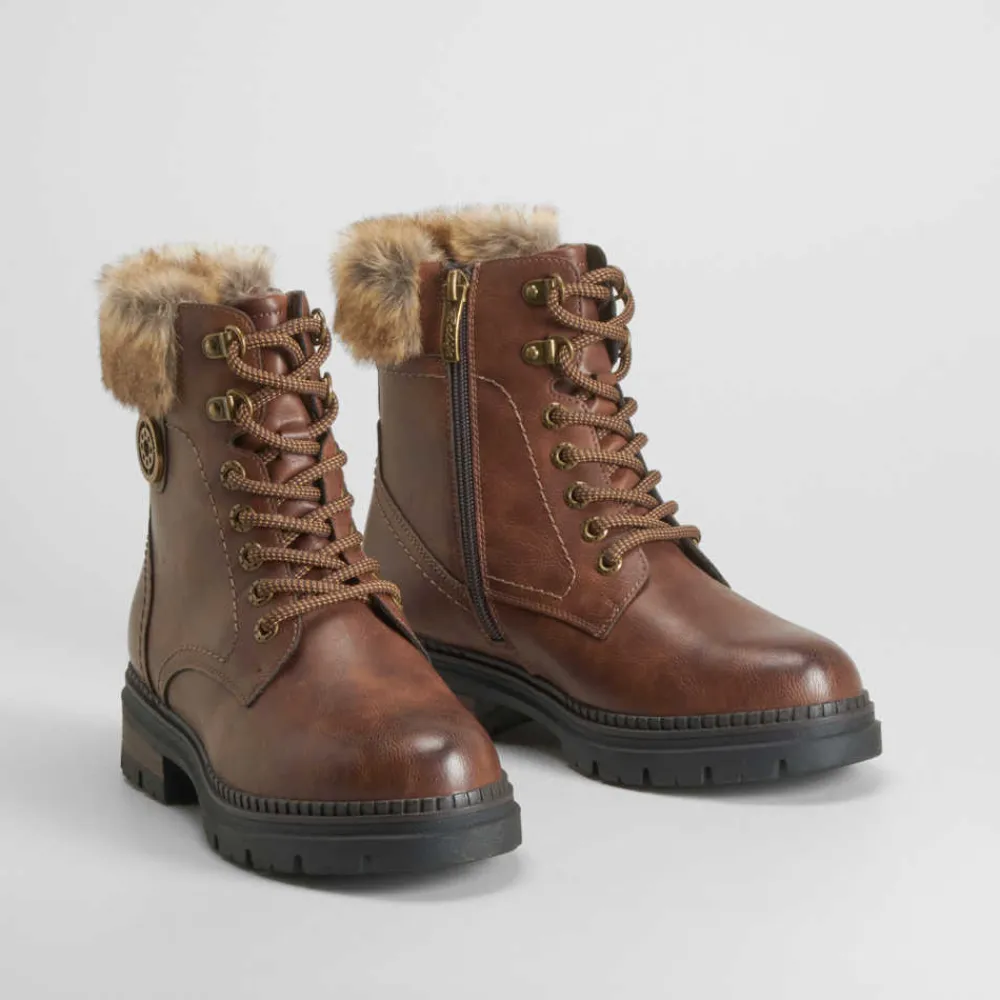 Botín cordón cuero Mujer Botines Planos