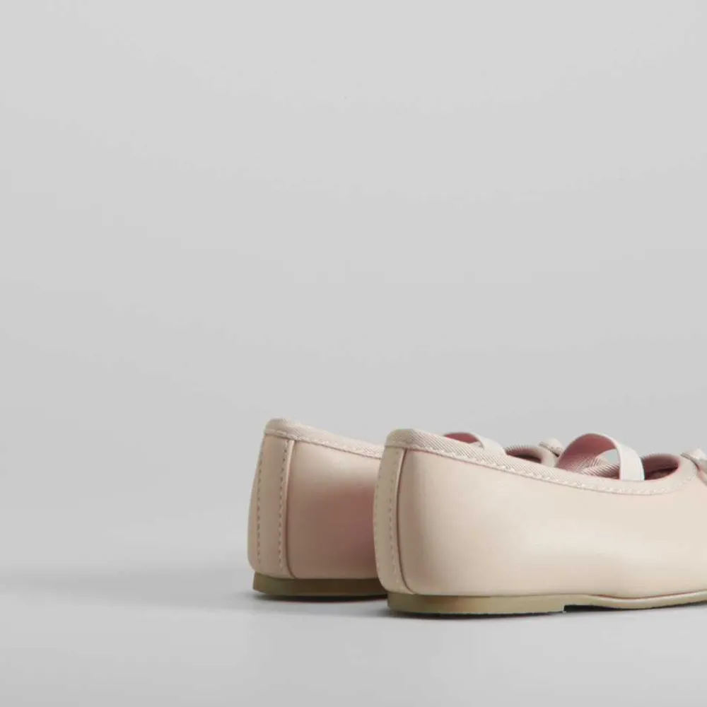 Bailarina básica para bebé de color beige de la marca BACHE. Modelo liso con una tira elástica en el empeine para una mayor sujeción y lazo de adorno en la puntera.
