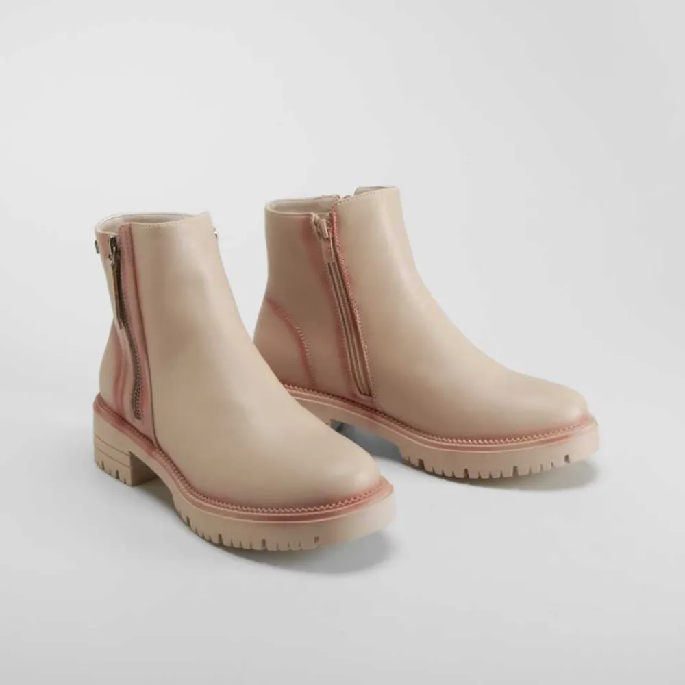 Este botín plano de la marca NYC combina estilo y funcionalidad, perfecto para un look casual y moderno. Fabricado en material sintético de alta calidad, su diseño en color beige aporta versatilidad y elegancia, ideal para combinar con diferentes estilos.