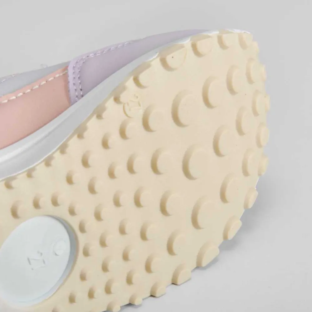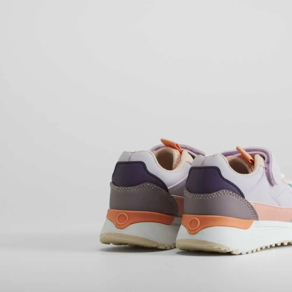 Zapatilla deportiva retrorunning multicolor para niñas. Modelo con cordones elásticos y tira de velcro ajustable.