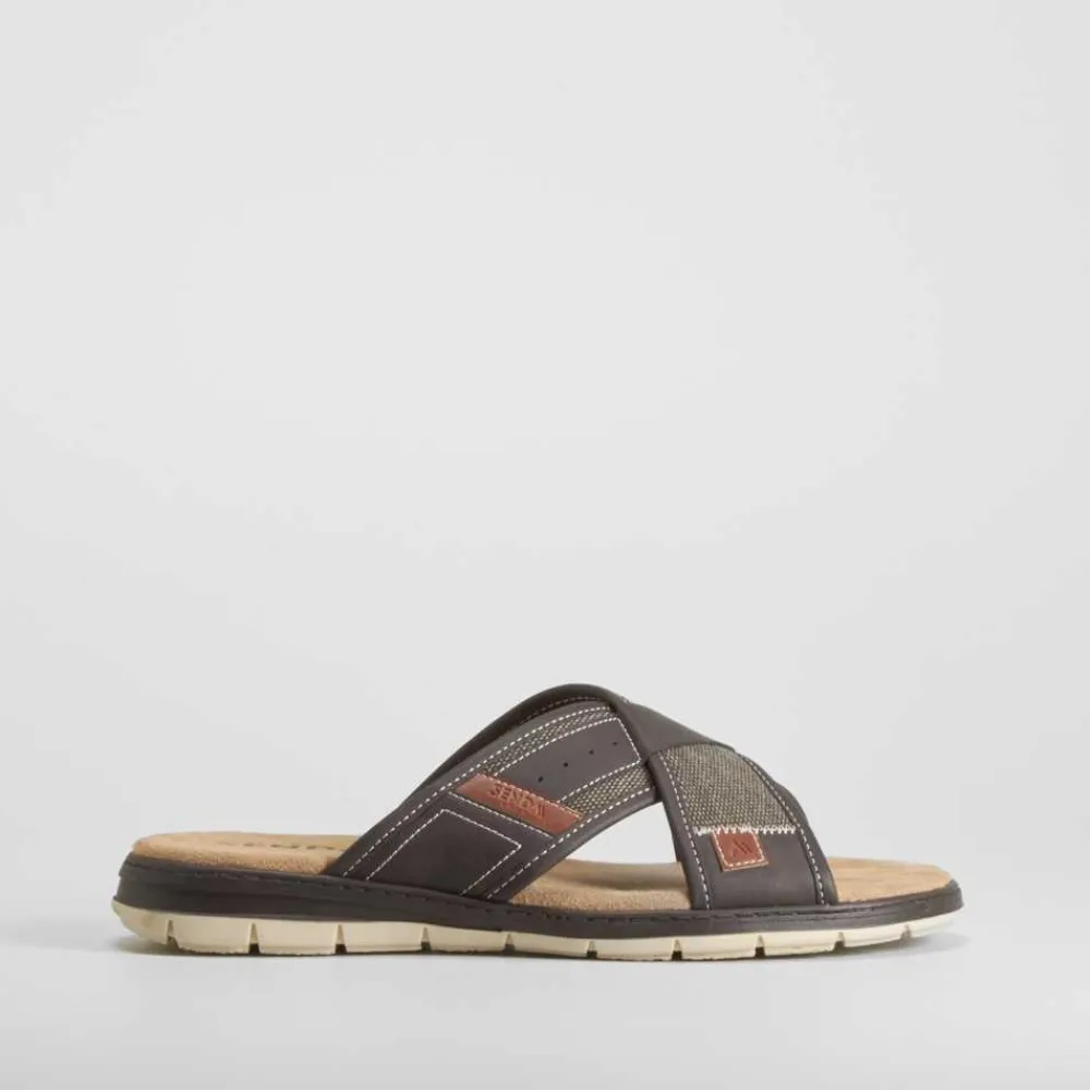Clearance Sandalia pala cruzada acolchada marrón Hombre Sandalias