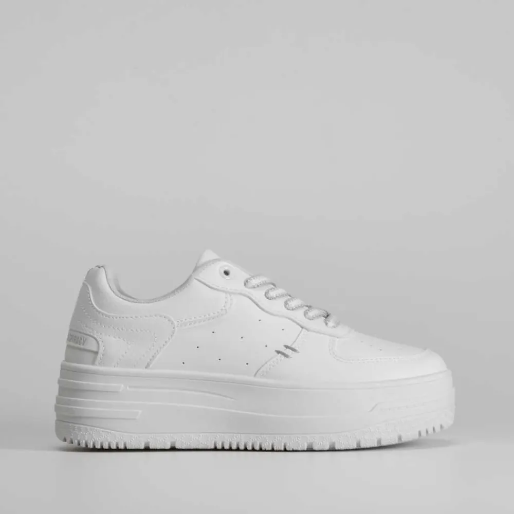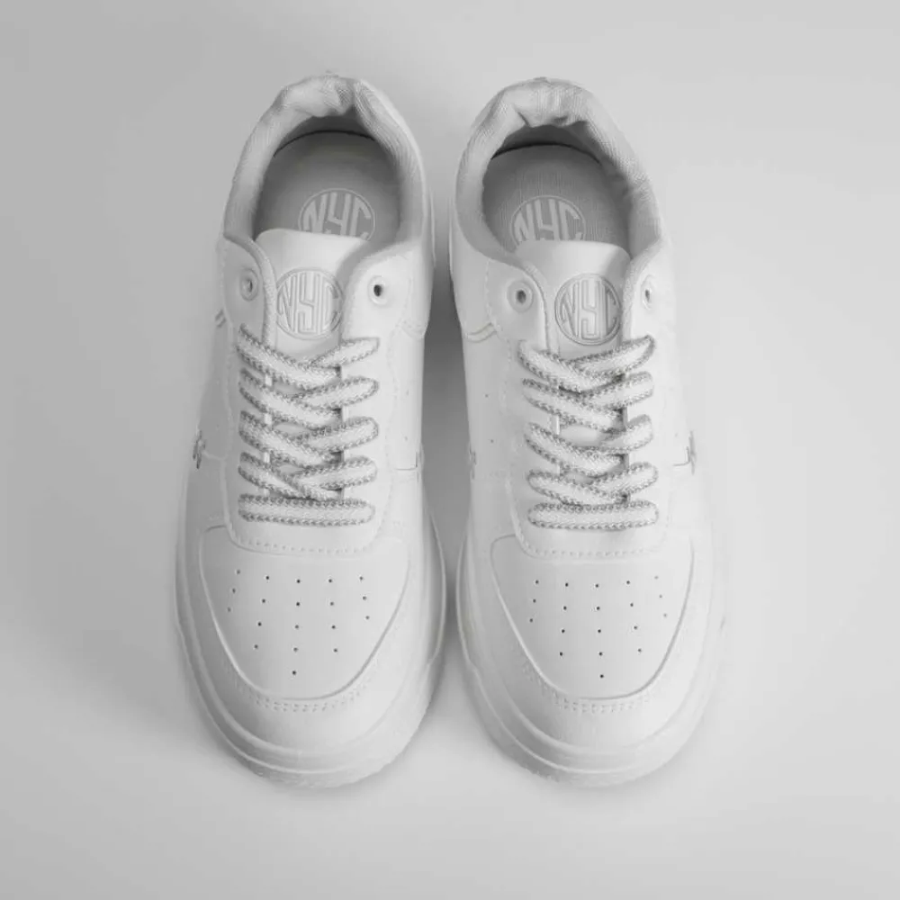 Zapatilla deportiva para mujer en color blanco de NYC. Modelo con cordones y plataforma baja.