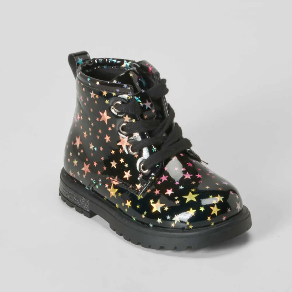 Discount Botín militar charol bebé estrellas negro Botas