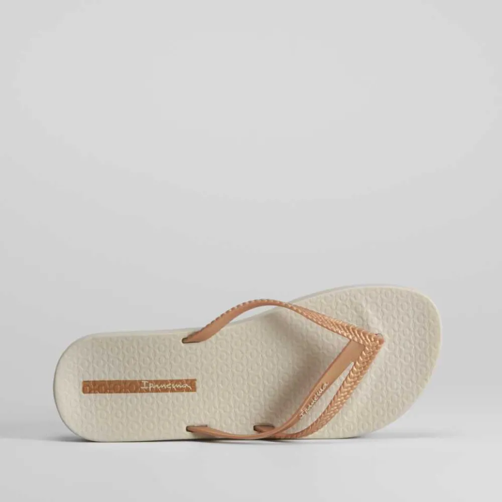 Chancla beige y dorada de IPANEMA para mujer con doble tira y planta anatómica.