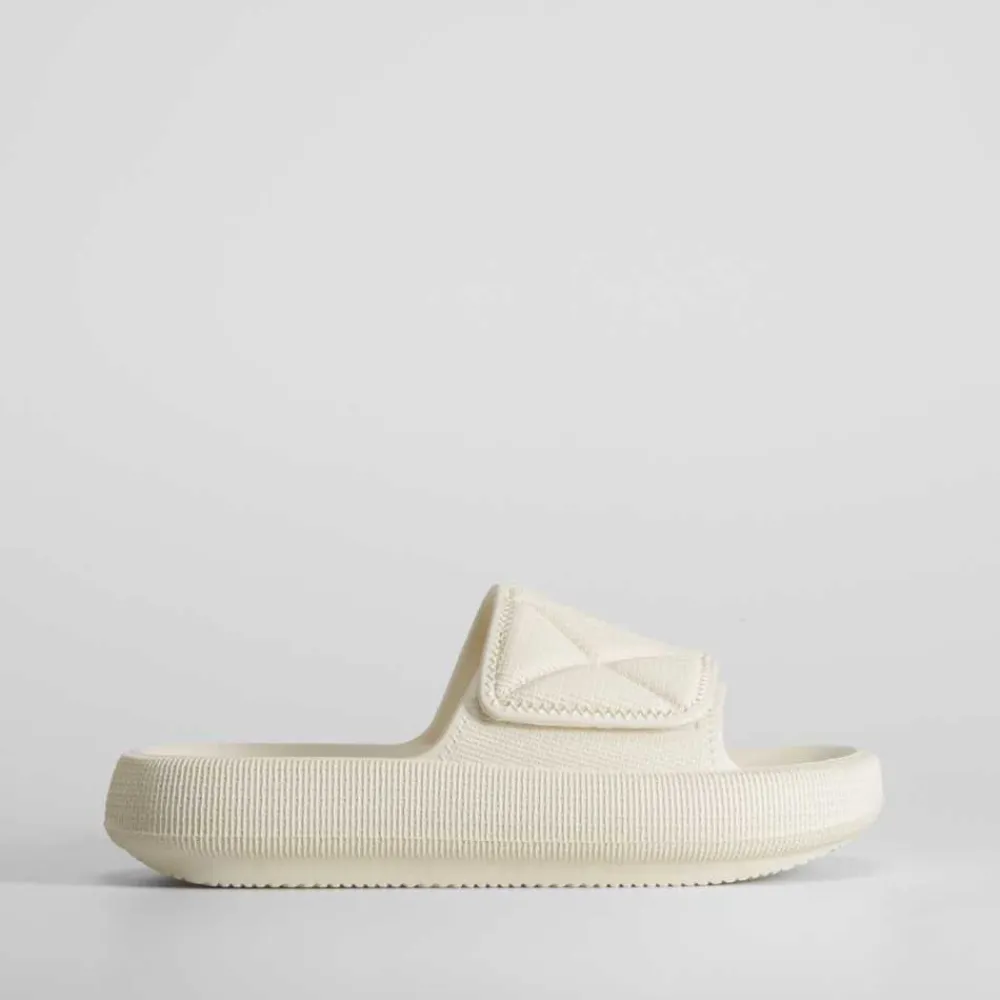 Sandalia de playa acolchada de COCONUT DRIVE para mujer. Modelo en color beige con velcro.