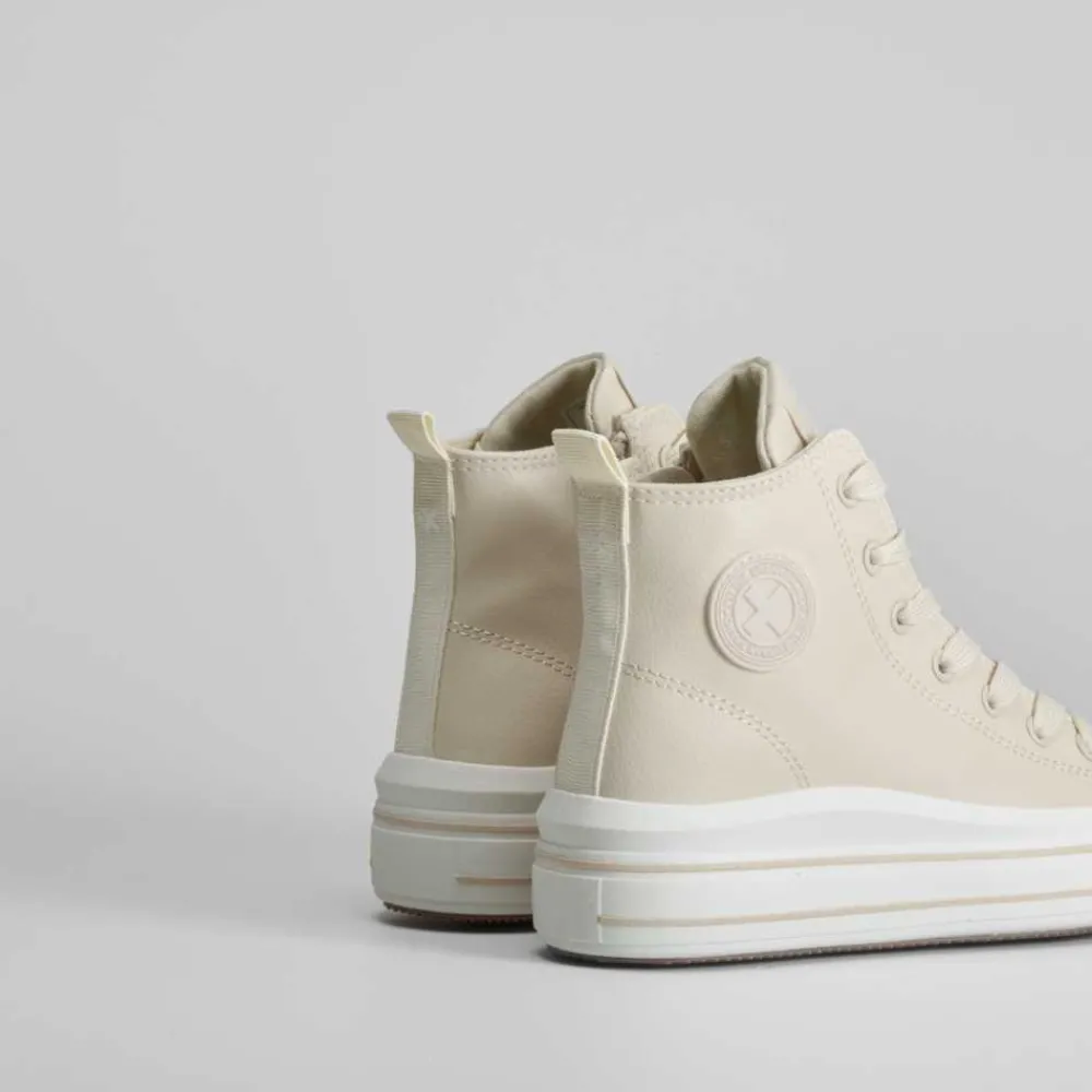 Zapatilla alta de color beige de la marca XTI para niñas. Modelo con el logo en el lateral y cierre de cordones entonados. Incorpora una práctica cremallera lateral. Puntera de caucho.