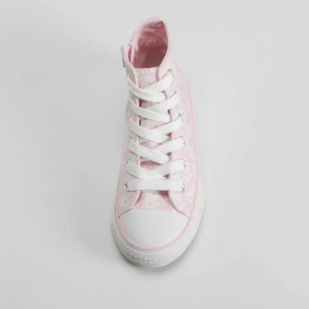 Zapatilla alta de lona margaritas rosa OH GIRL