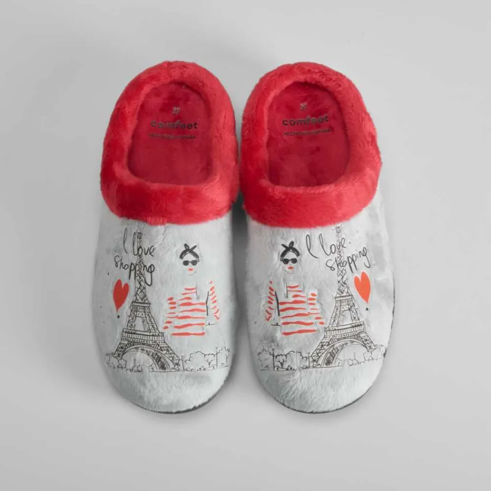 Zapatilla de casa de COMFEET para mujer. Diseño confortable con una plantilla acolchada extraíble. Suela de goma. Hecho en España.