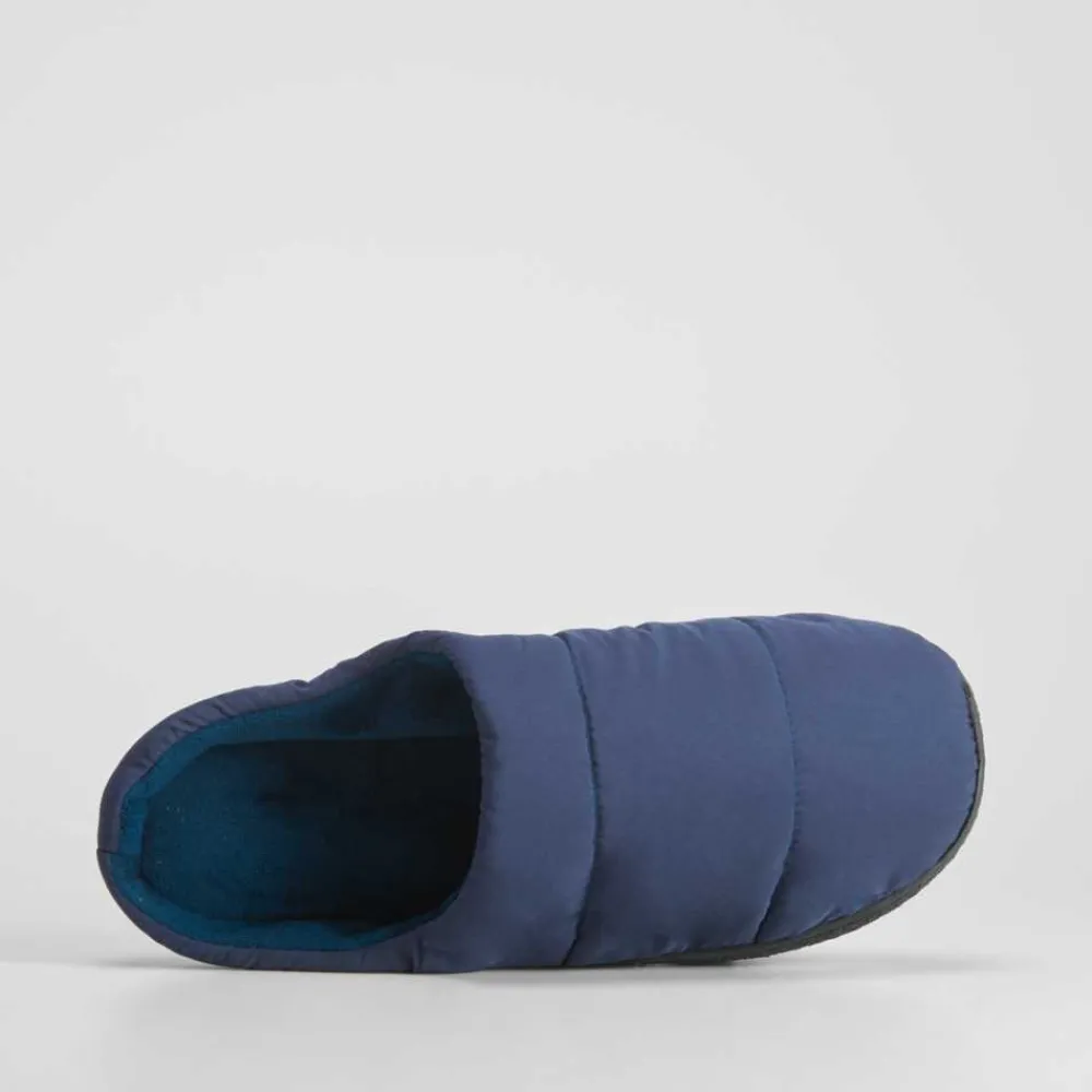 Zapatilla de andar por casa acolchada en nylon de la marca ACHUCHONAS. Modelo en color azul, interior forrado muy cálido y plantilla de gel muy confortable.