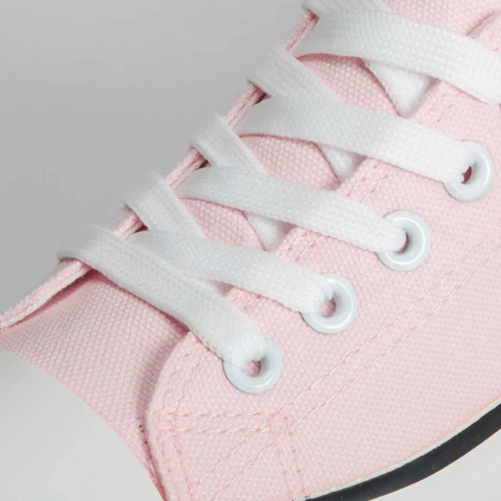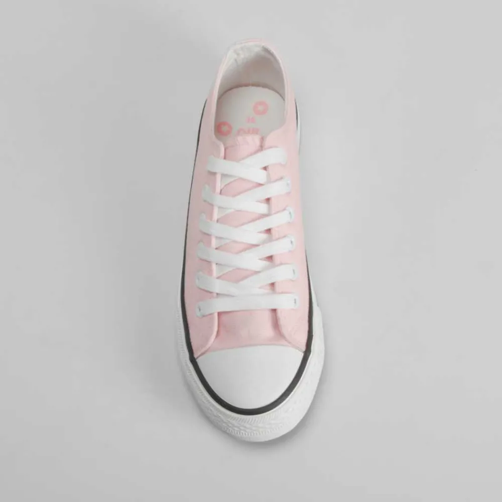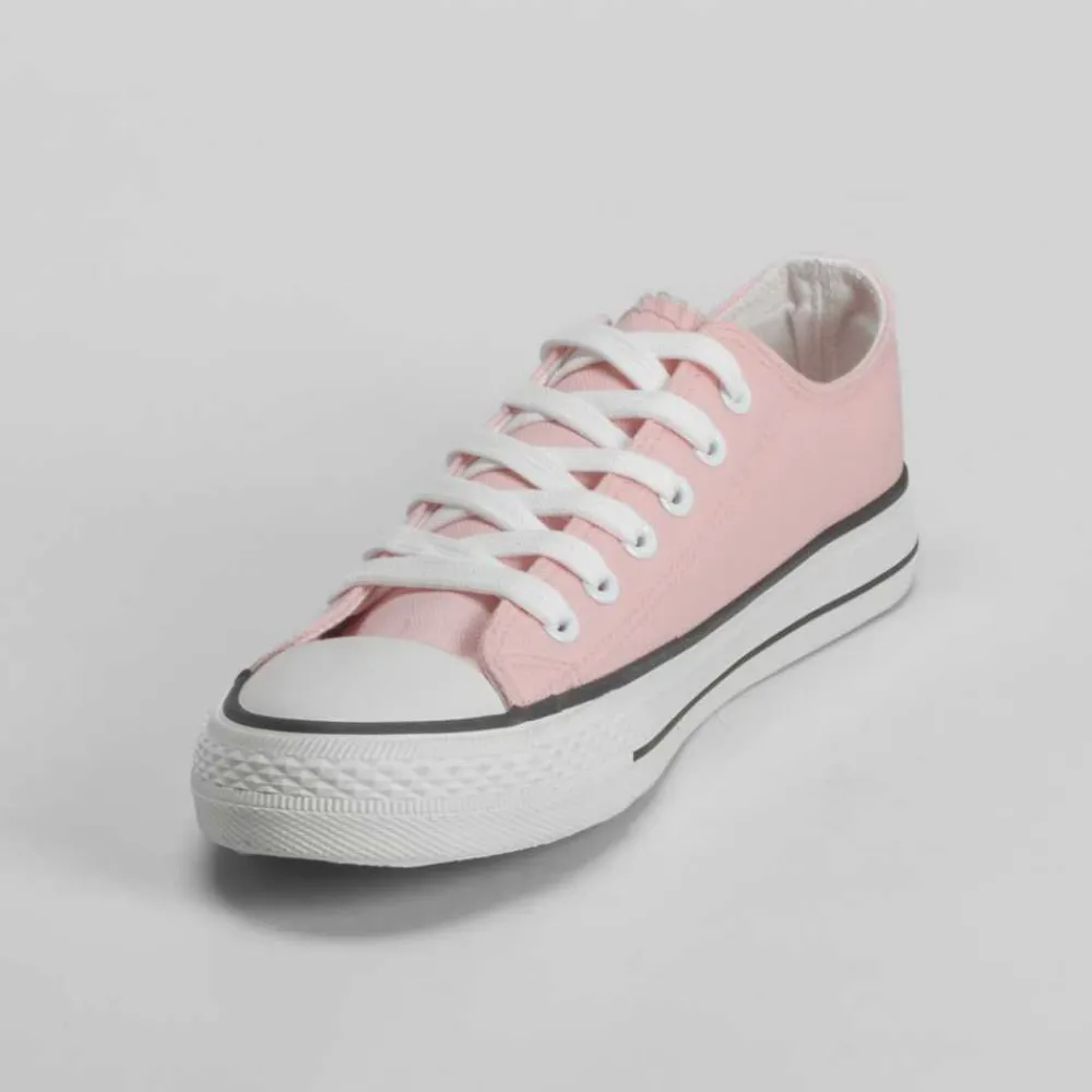 Zapatilla de lona básica de la marca OH GIRL para niños. Exterior liso en color rosa. Cierre de cordones y puntera de caucho.