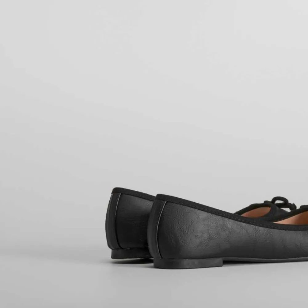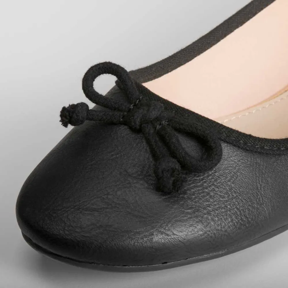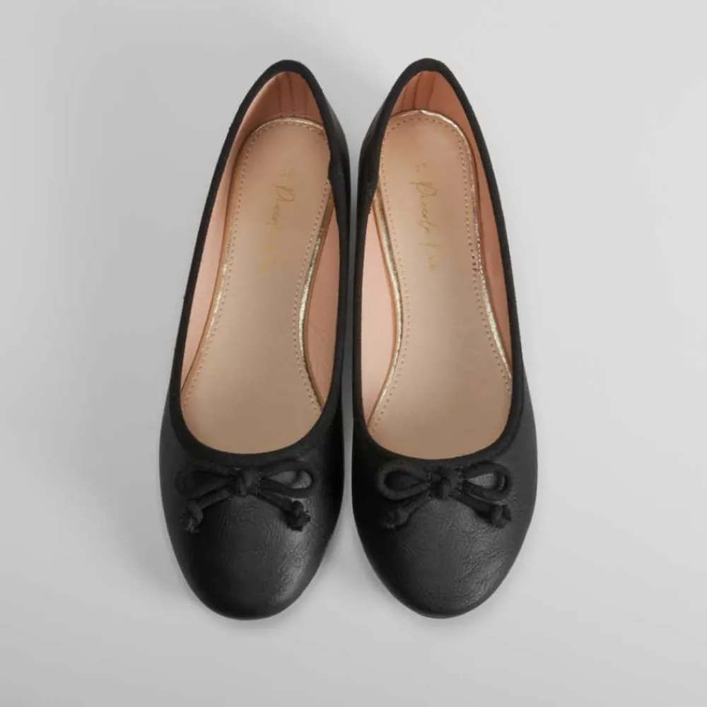 Bailarina básica de PICCOLA PIU para mujer. Exterior liso y sencillo en color negro con un lazo de adorno en la puntera.