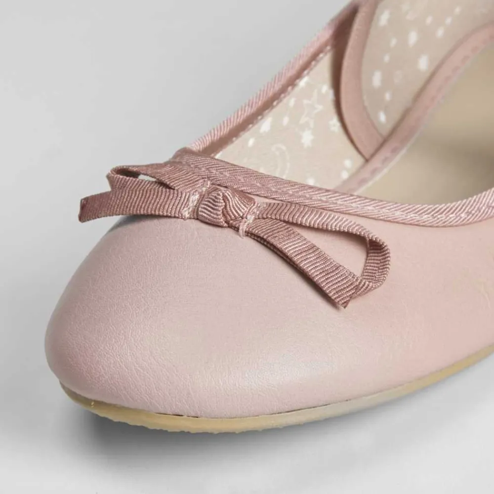 Bailarina rosa de la marca OH GIRL. Exterior liso con un lazo en la puntera y un elástico en el empeine para un mayor ajuste.