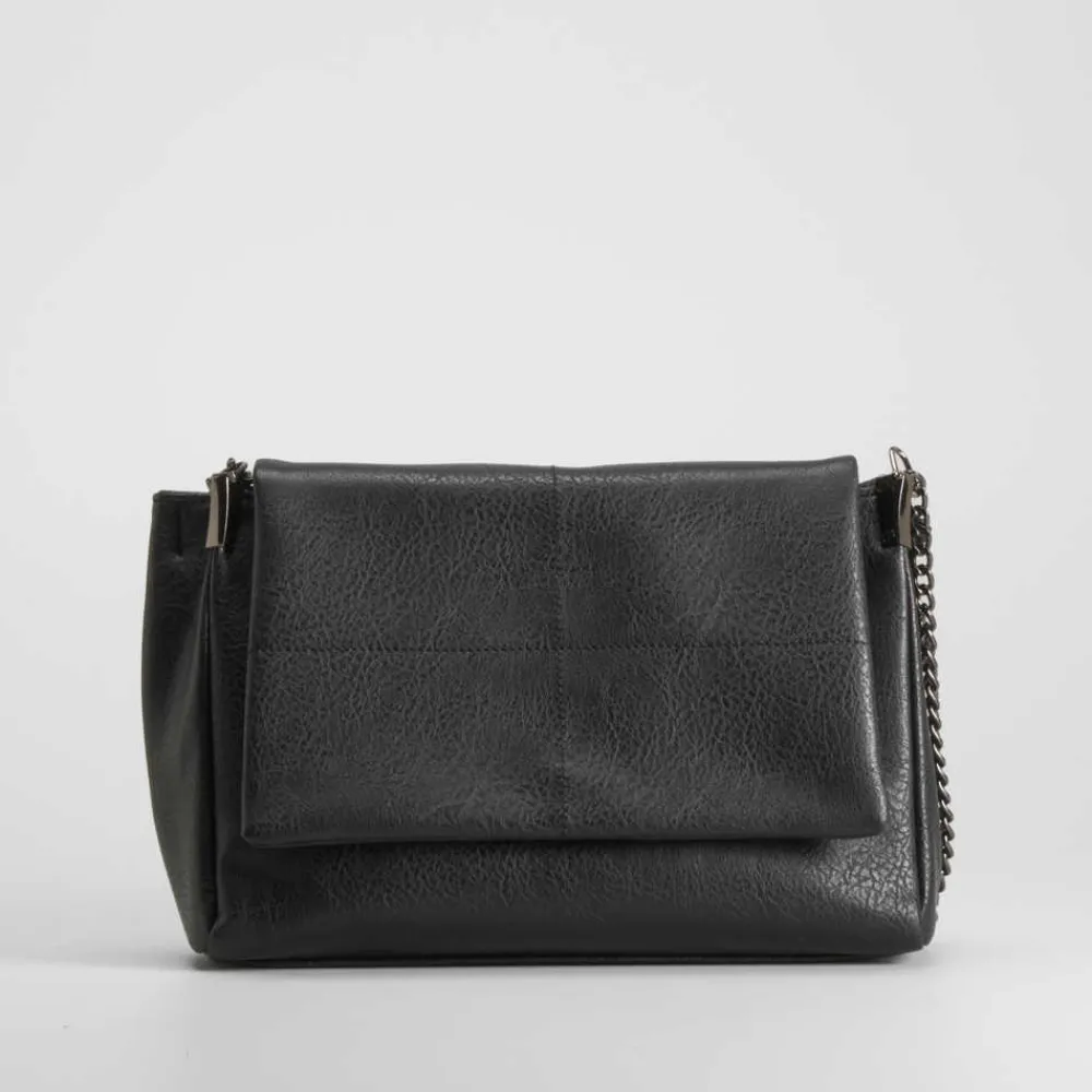 Hot Bolso bandolera solapa pestuntes negro Bolsos Y Carteras