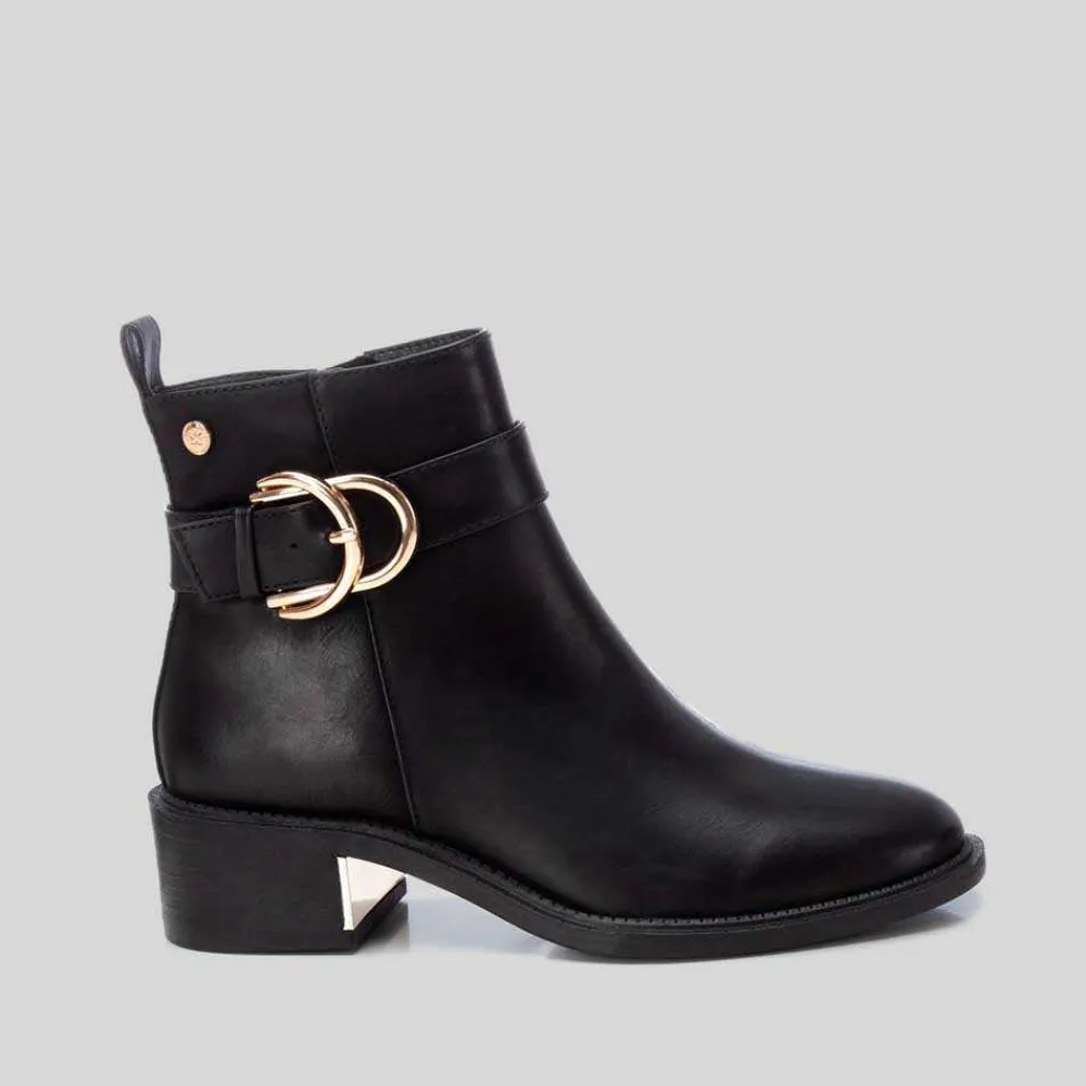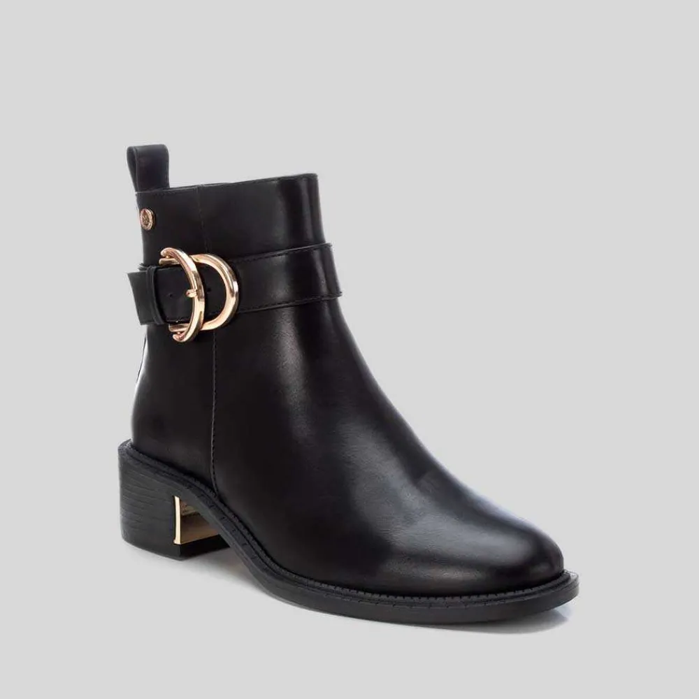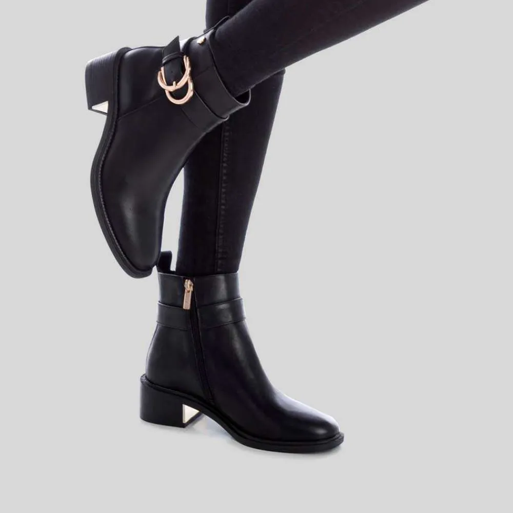 Hot Botín tacón bajo aro doble negro Mujer Botines Tacón