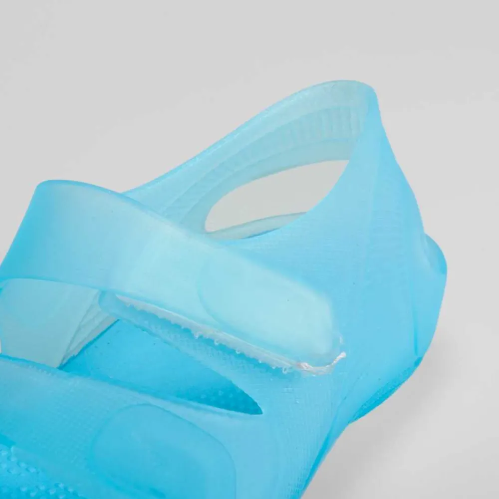 Cangrejera con la puntera cerrada de la marca COCONUT DRIVE para niñas. Modelo en color azul con una tira de velcro para un buen ajuste.