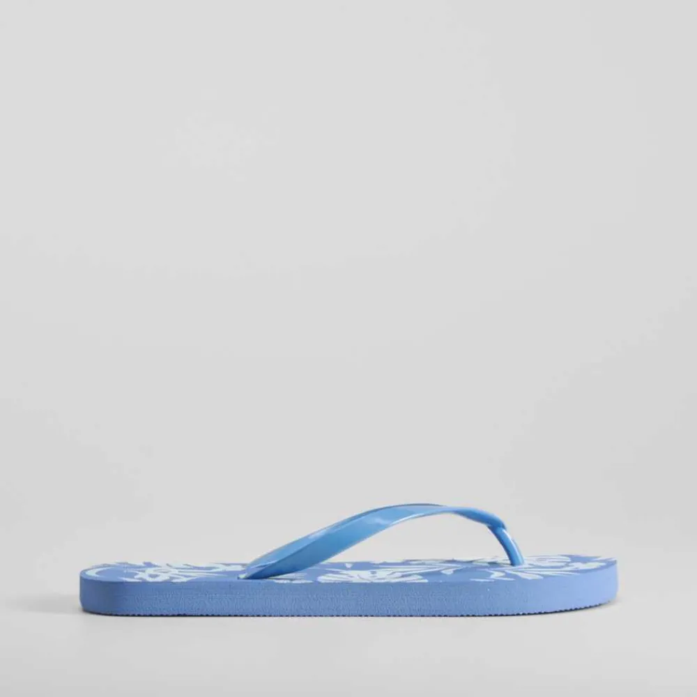 Hot Chancla de dedo floral azul Mujer Chanclas