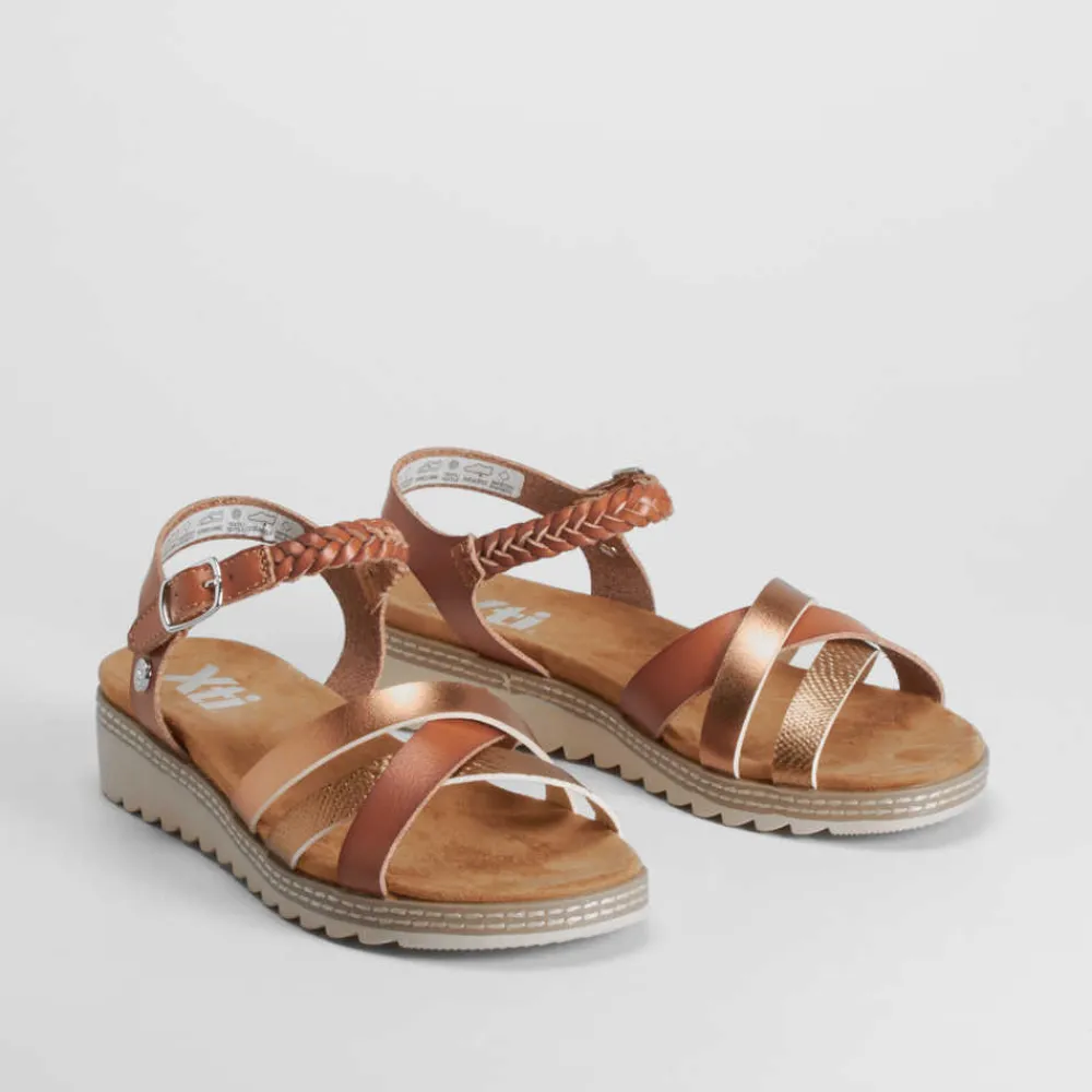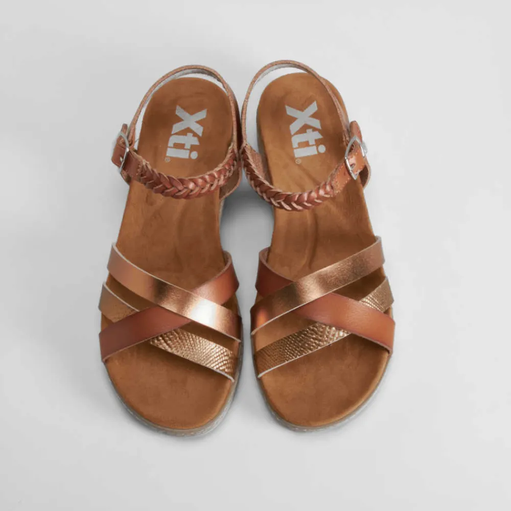 Hot Sandalia cuña tiras suela sierra camel Mujer Sandalias Cuña