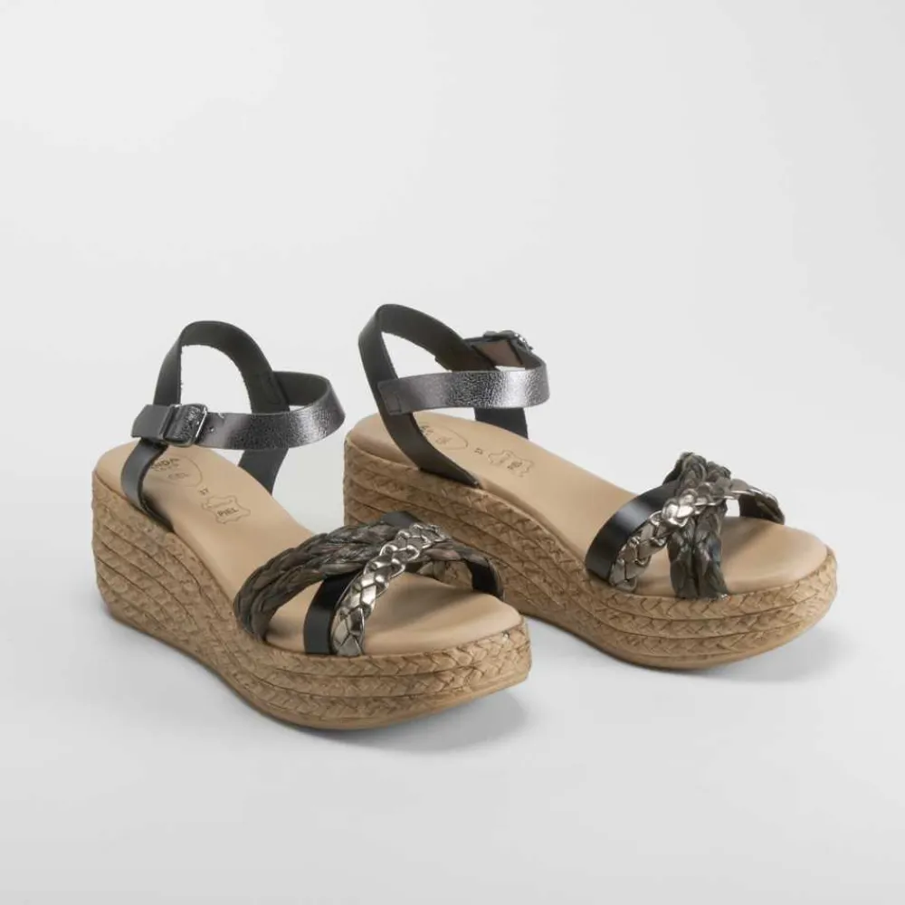 Sandalia de cuña trenzas de piel negro SENDA ROAD
