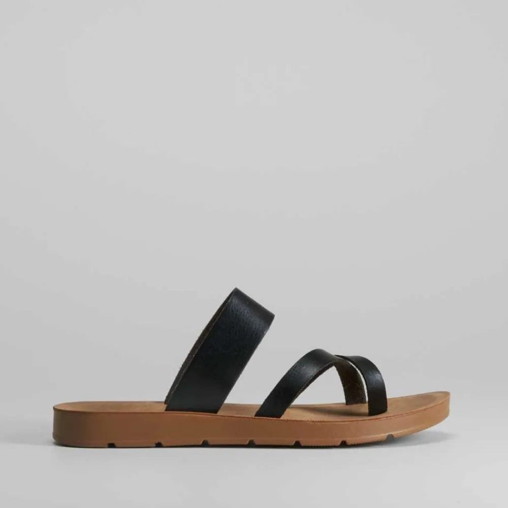 Sandalia destalonada esclava SENDA ROAD en color negro.