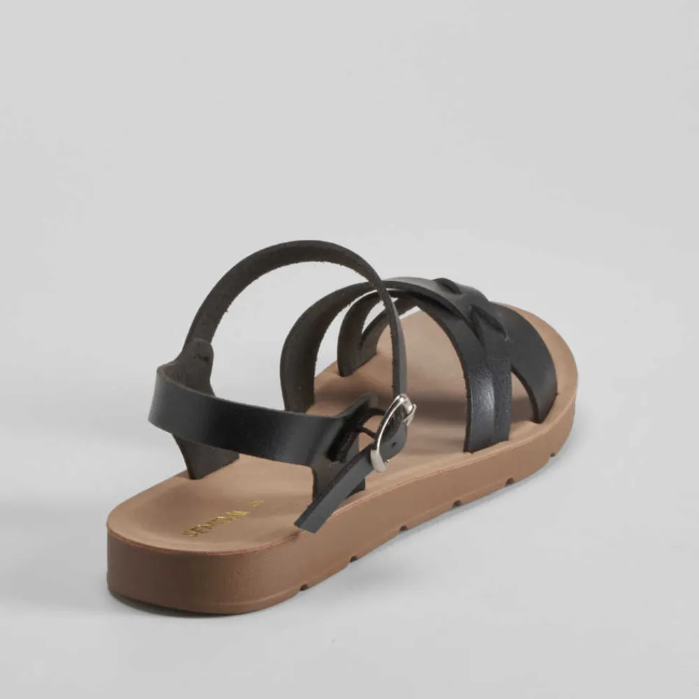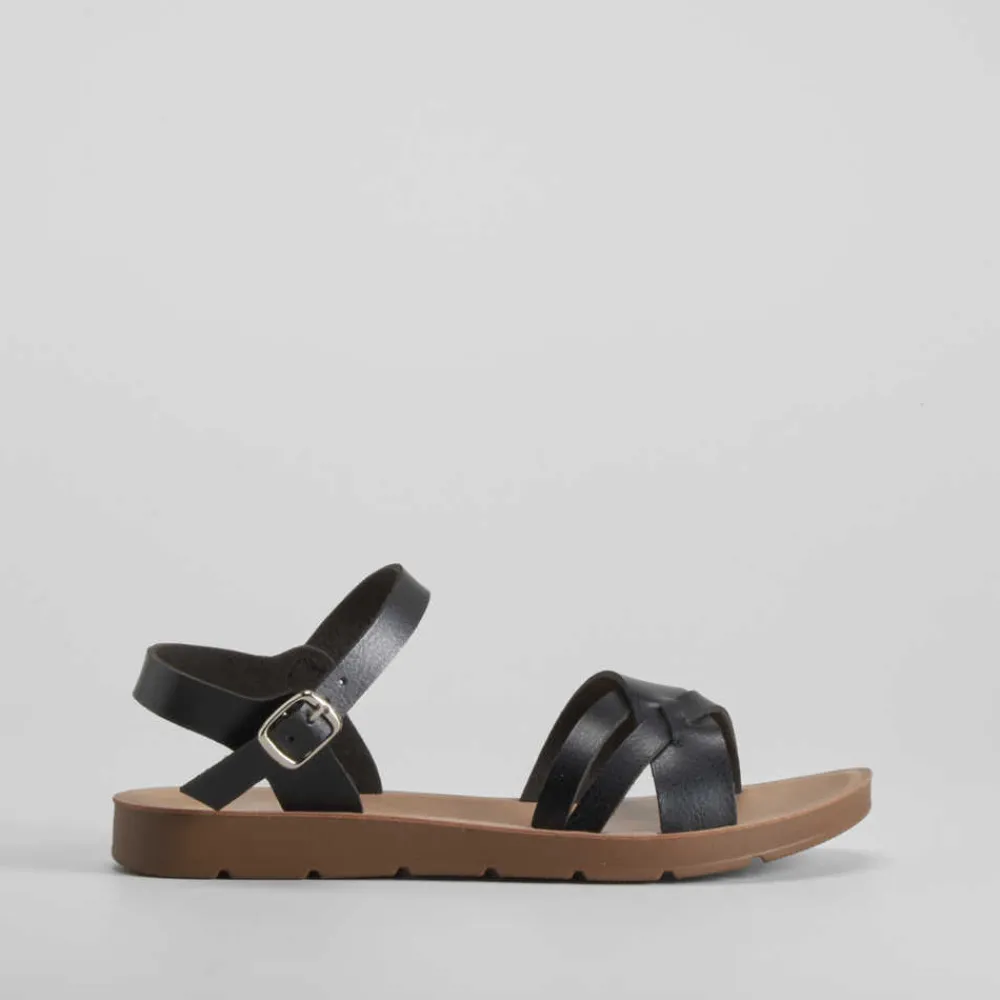 Hot Sandalia tiras cruzada negra Mujer Sandalias Planas
