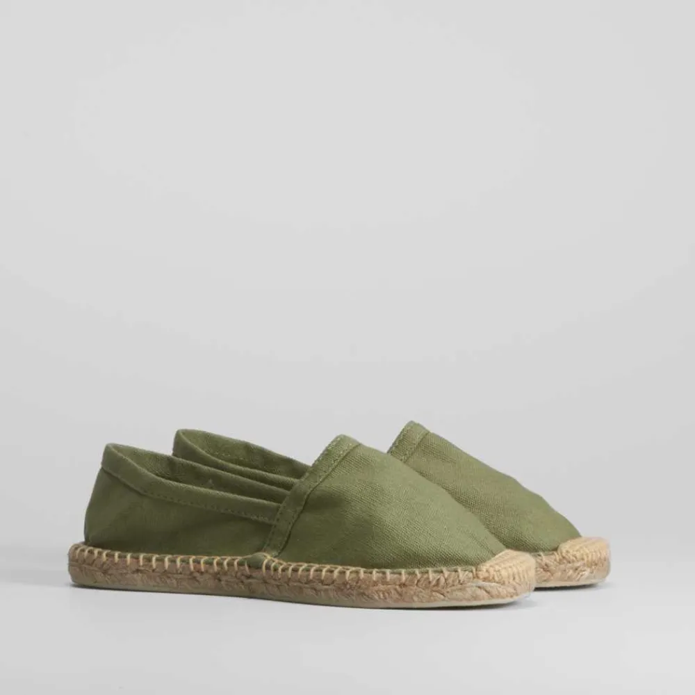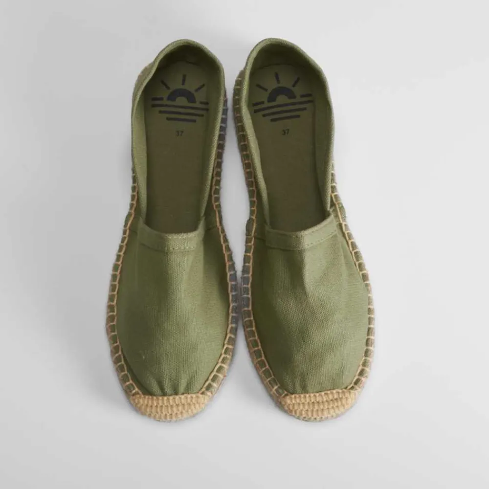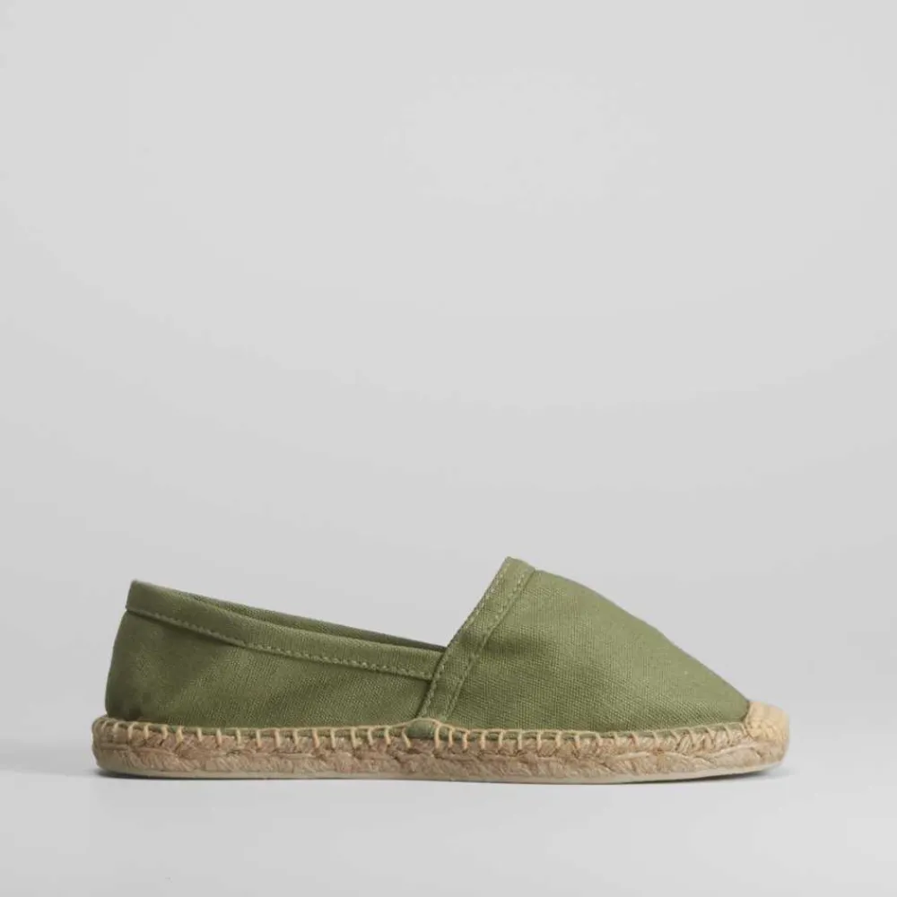 Alpargata básica de mujer en color verde kaki y piso de esparto de la marca COCONUT DRIVE. Recomendamos coger una talla más de la que utilices habitualmente.