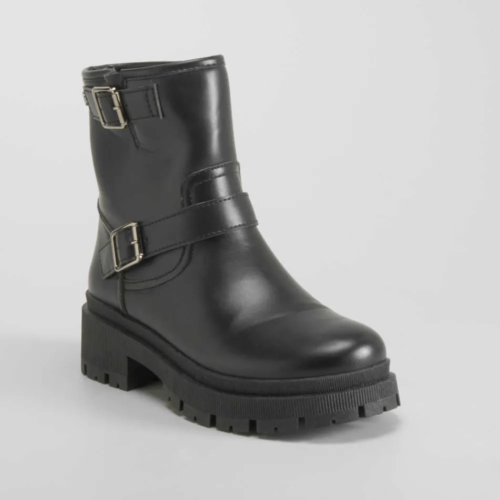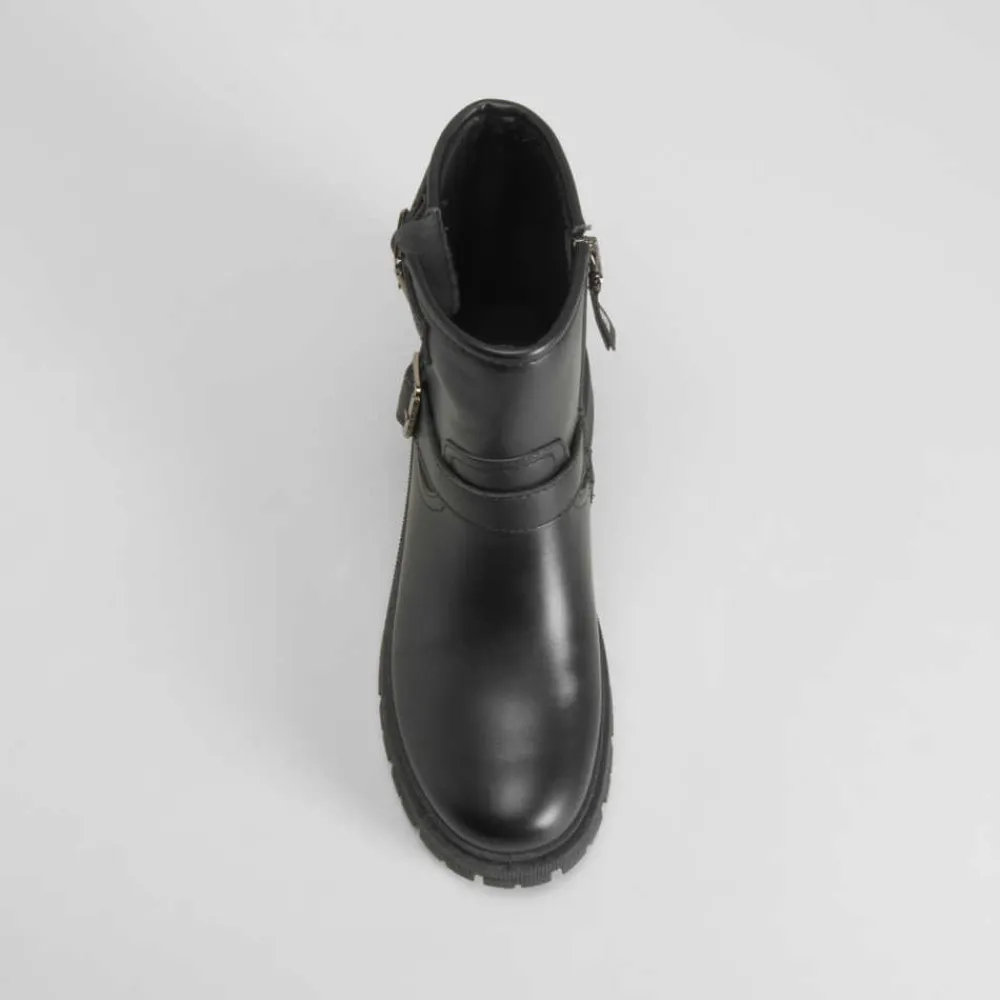New Botín motero negro Mujer Botines Planos