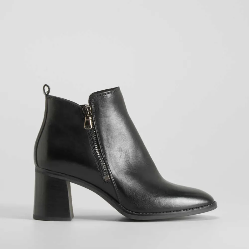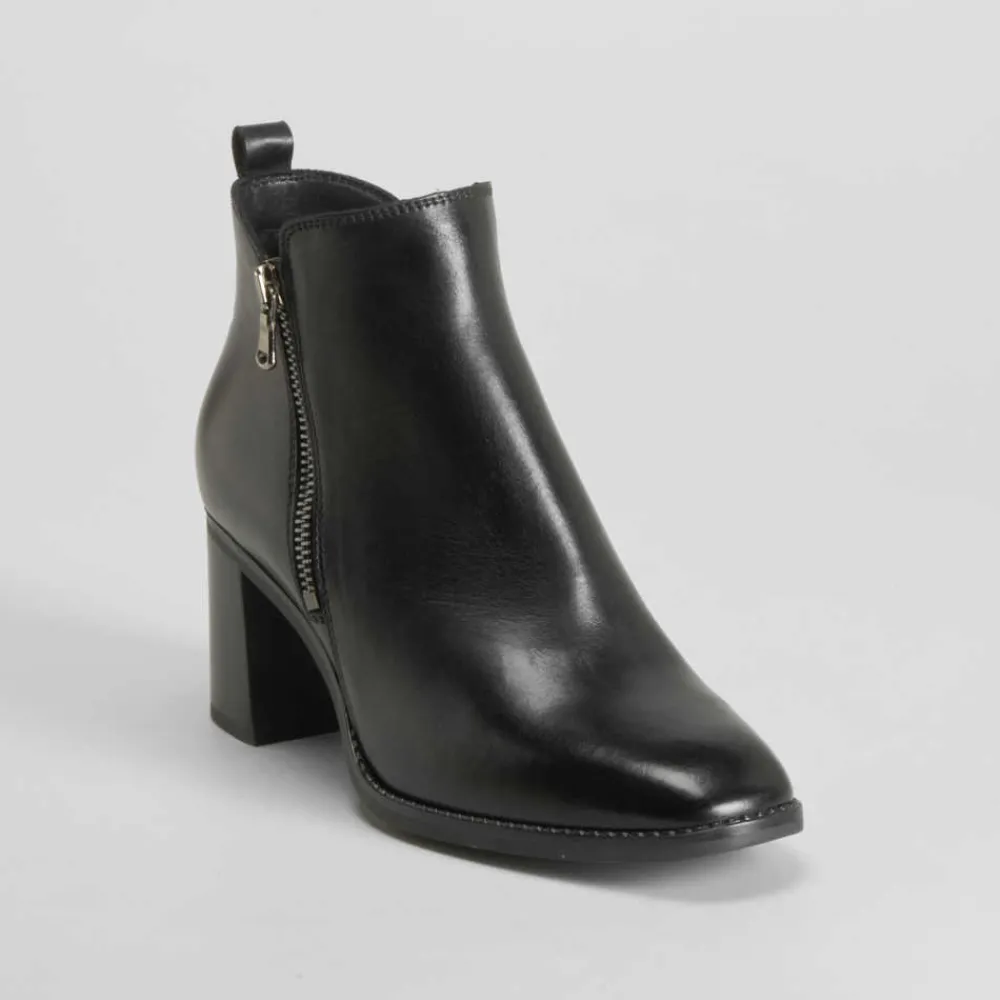 New Botín tacón cremallera piel negro Mujer Botines Tacón