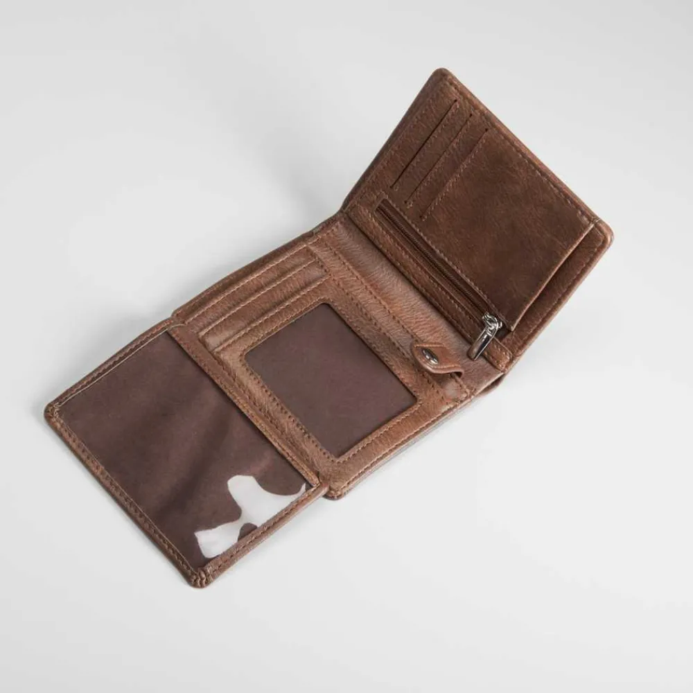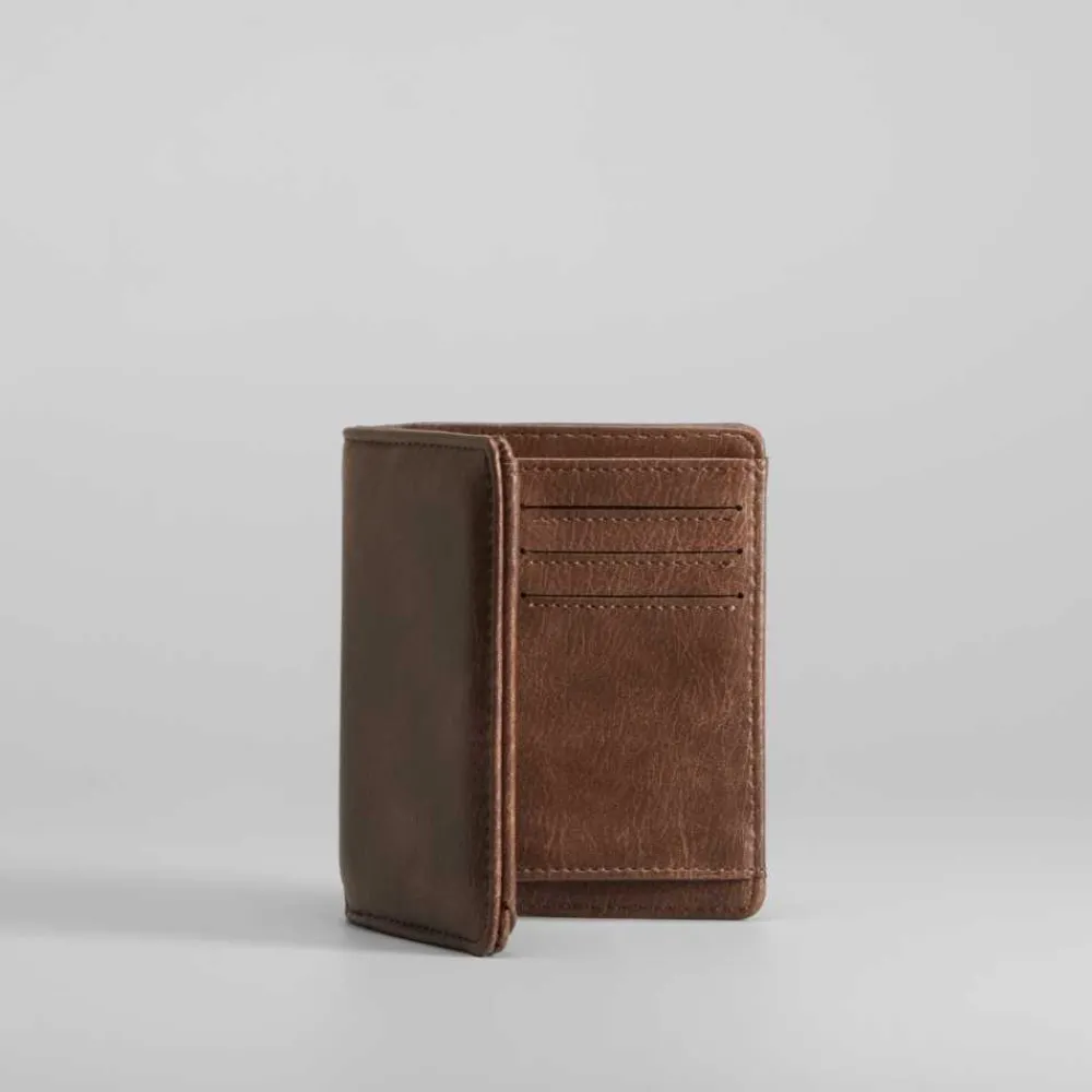 Cartera de MR HANSEN en color marrón de orintazión vertical para hombre. Modelo con ranuras para tarjetas, billetero y bolsillo para monedas.