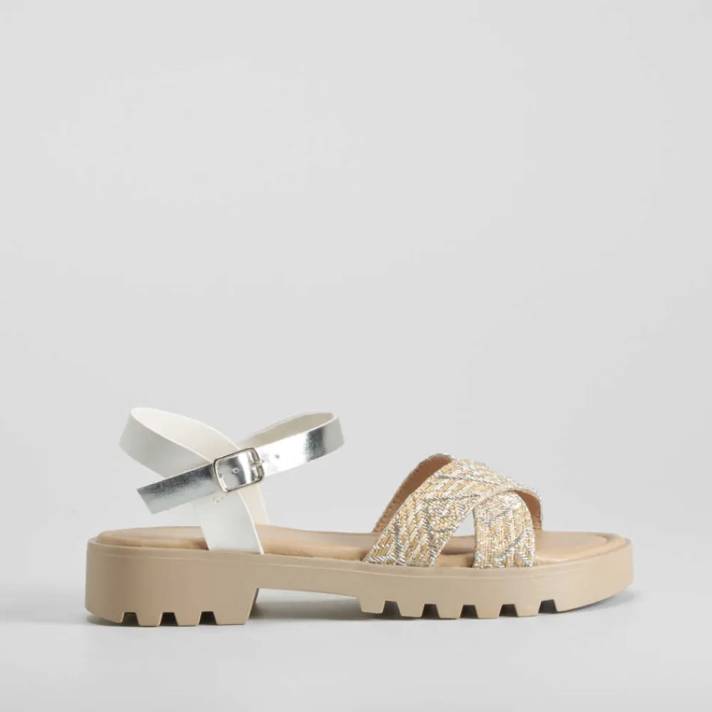 New Sandalia cruzada rafia blanca OH GIRL Sandalias