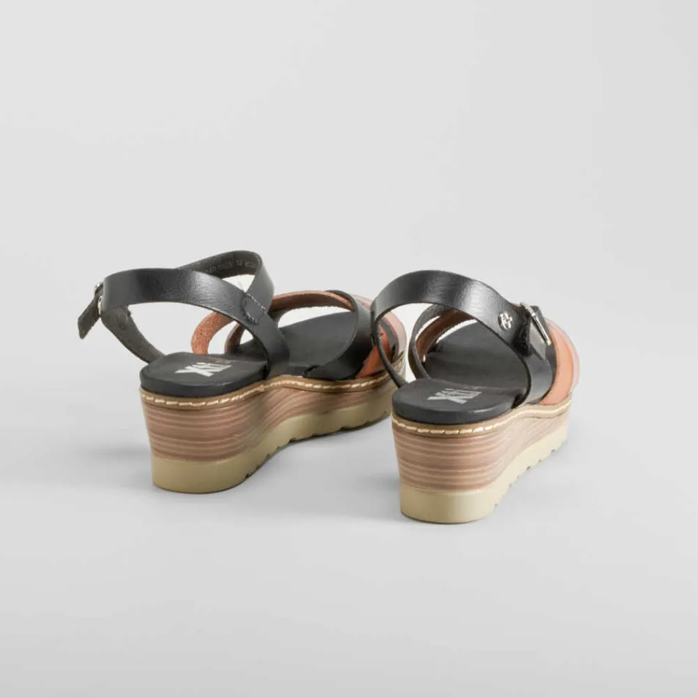 New Sandalia de cuña de tiras marrón y negra Mujer Sandalias Cuña