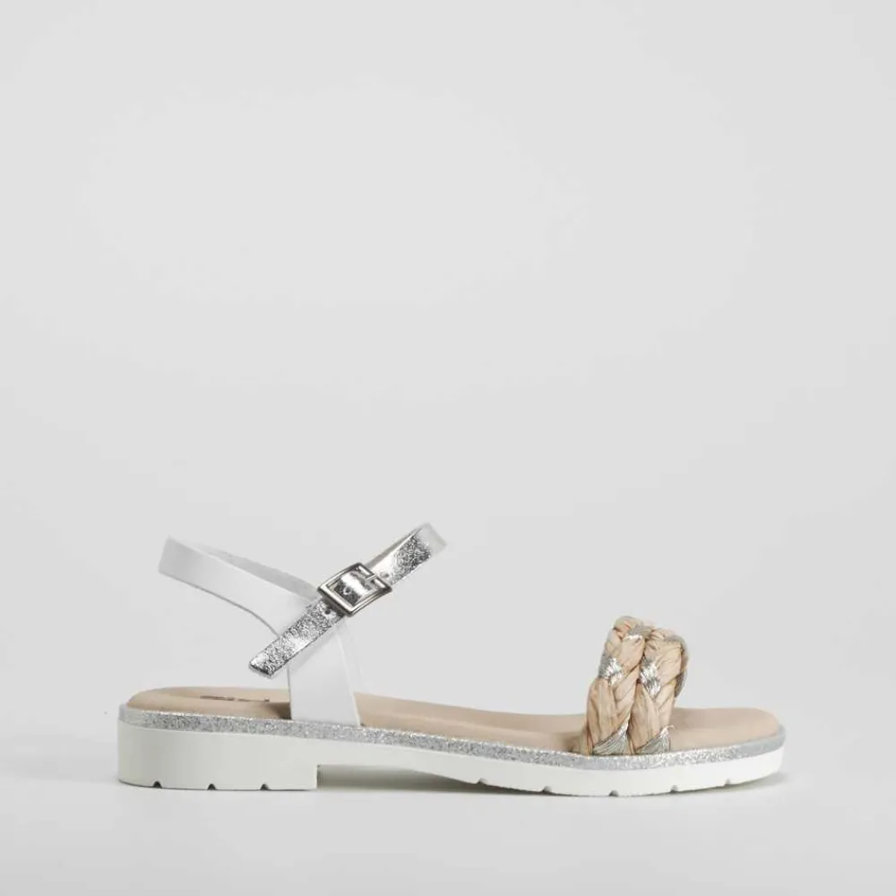 New Sandalia de piel pala trenzada plata OH GIRL Sandalias