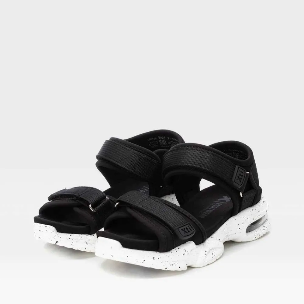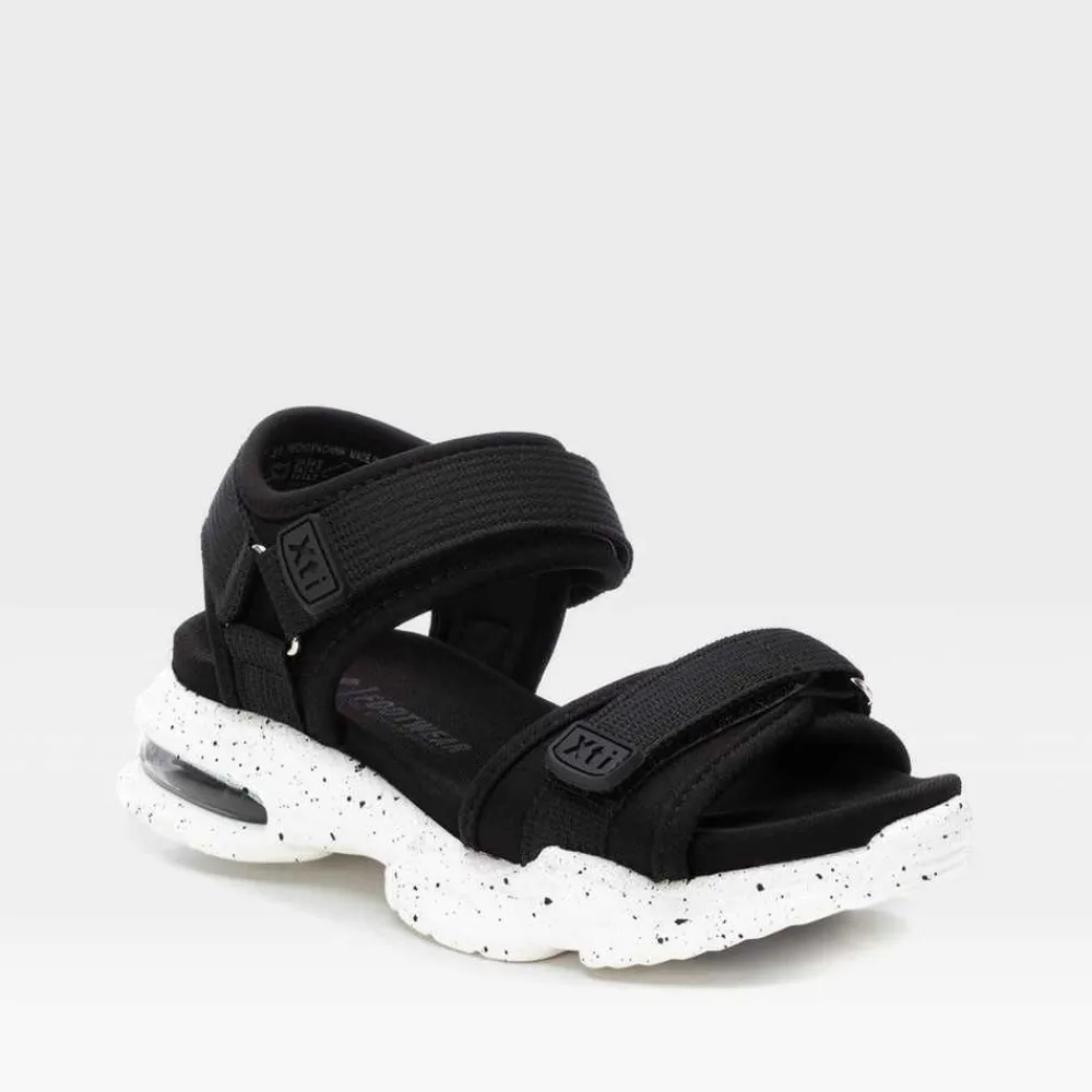 Sandalia deportiva negro con cámara de aire de la marca XTI para niñas. Modelo con dos velcros ajustables y suela con plataforma baja y cámara de aire.