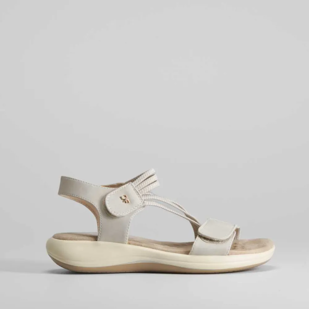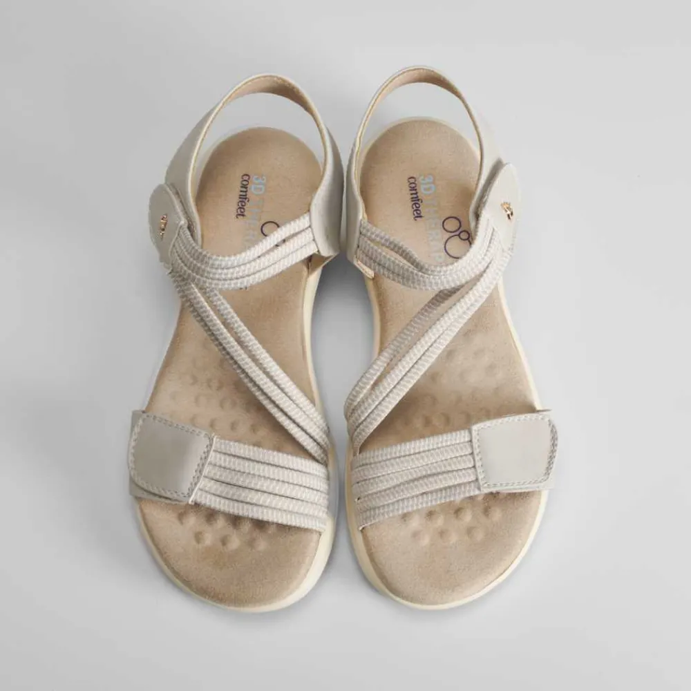 Sandalias sport con velcros en color beige de la marca COMFEET. Corte con dos tiras elásticas finitas.