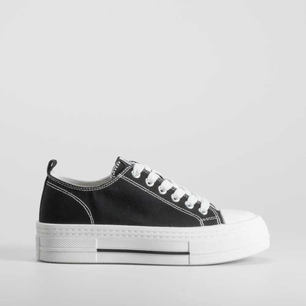 New Zapatilla lona plataforma negra suela blanca Mujer Zapatillas Lona