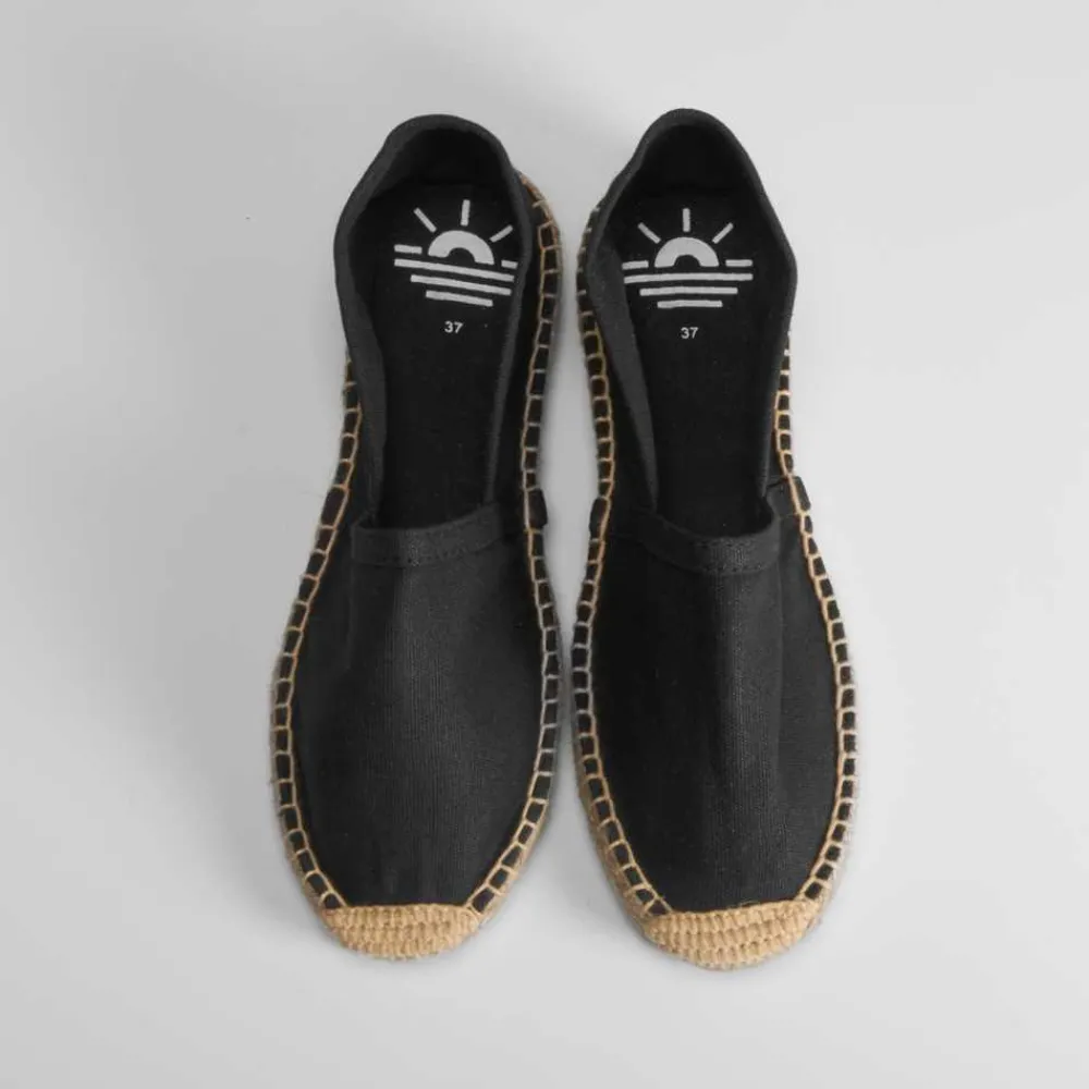 Alpargata básica de mujer en color azul marino y piso de esparto de la marca COCONUT DRIVE. Recomendamos coger una talla más de la que utilices habitualmente.
