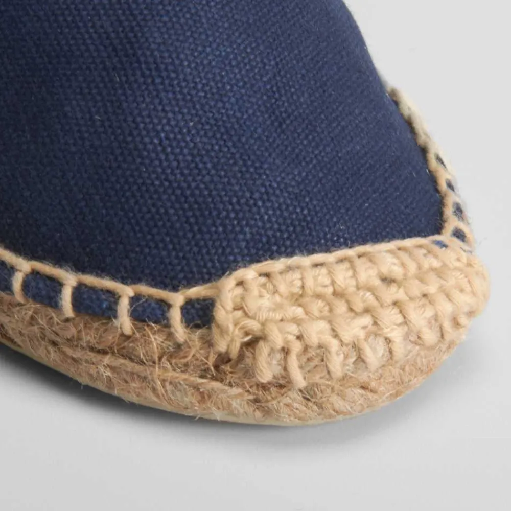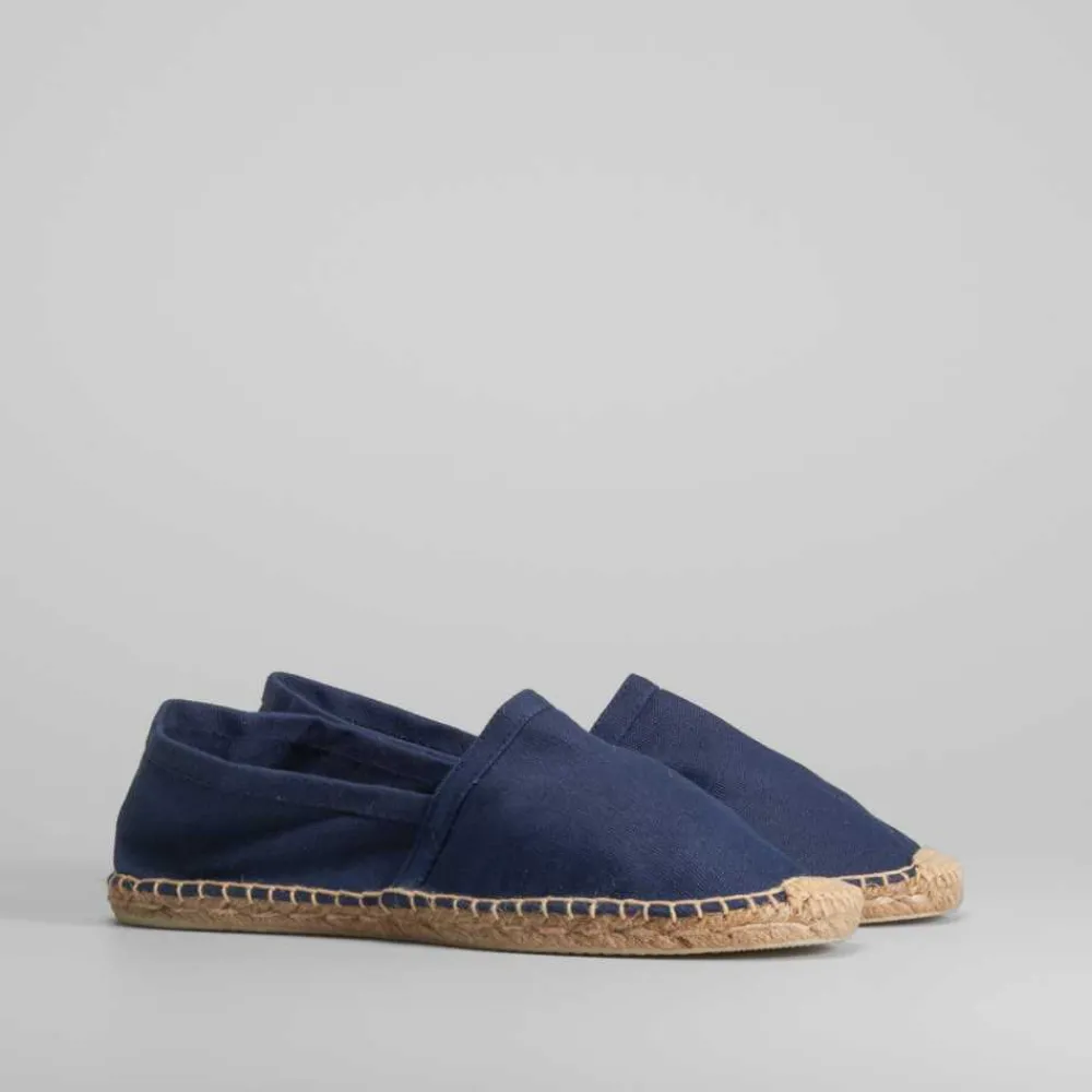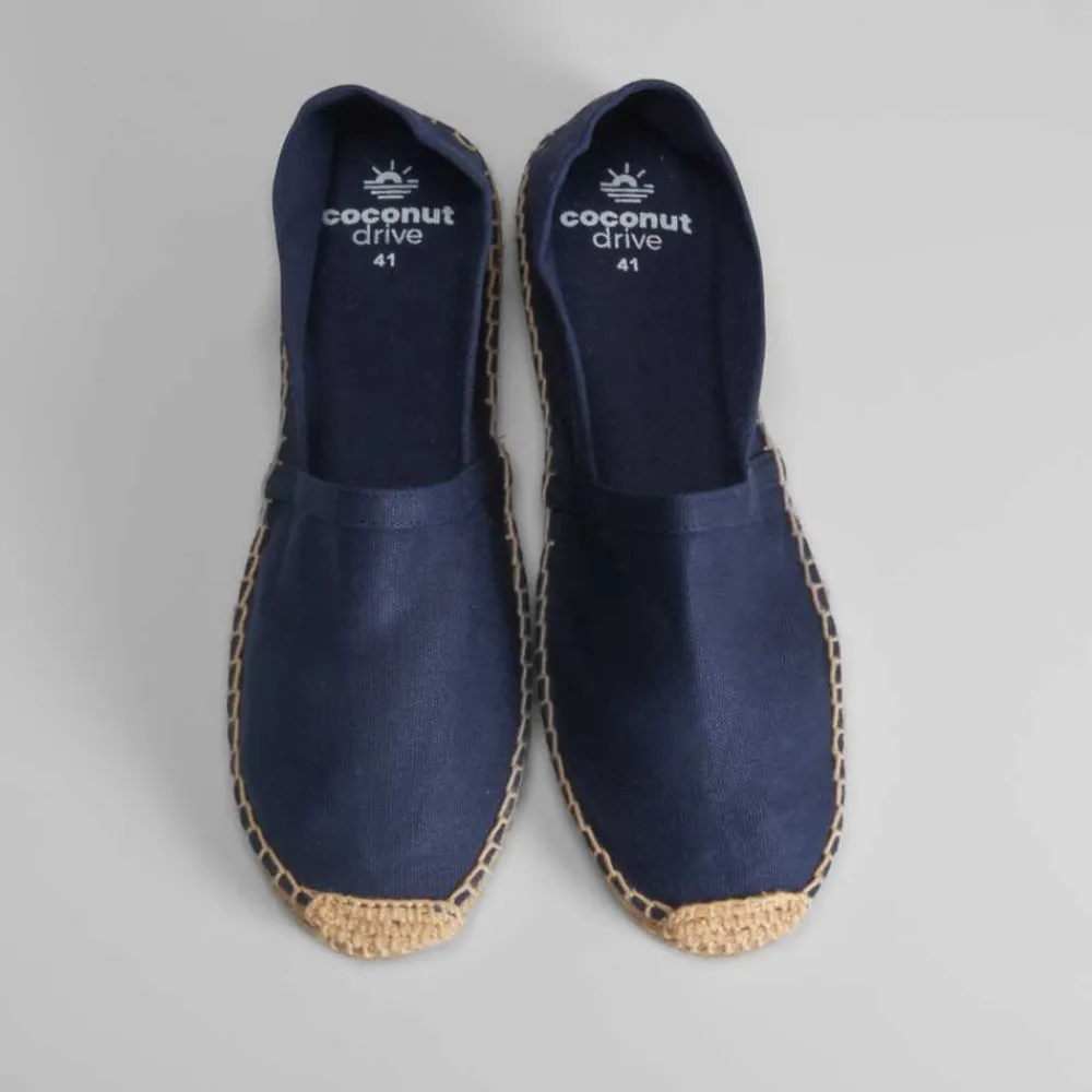 Alpargata básica de hombre en denim oscuro y piso de esparto de la marca COCONUT DRIVE. Recomendamos coger una talla más de la que utilices habitualmente.