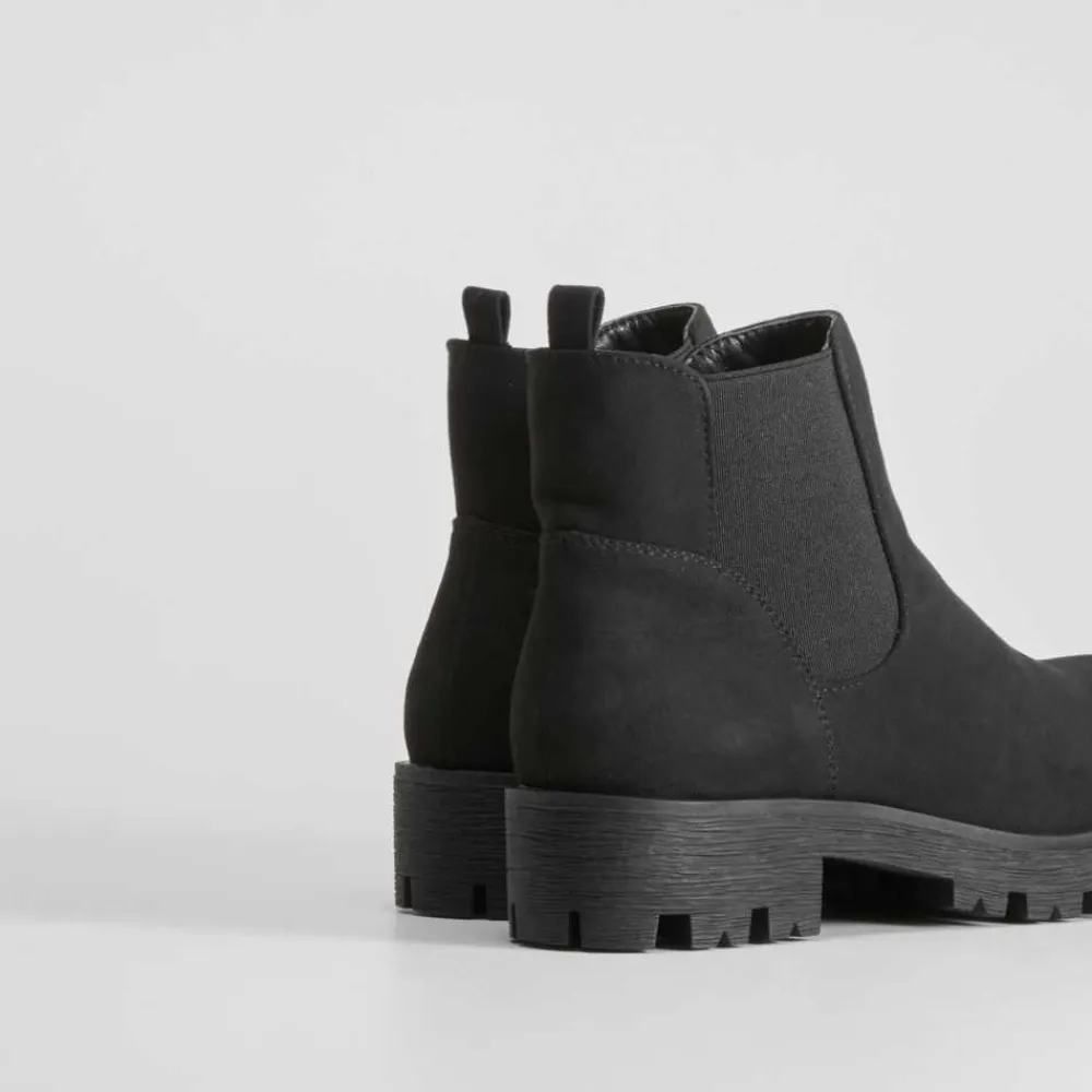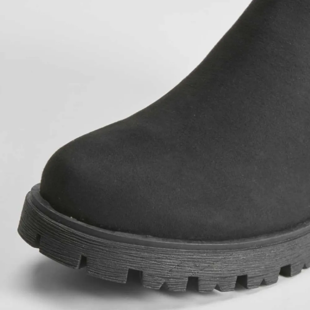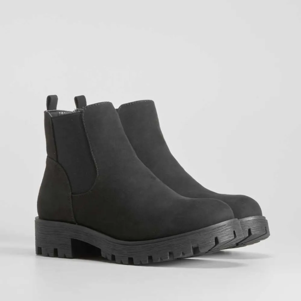 Botín chelsea para niña de la marca OH GIRL. Modelo con elásticos en los laterales en color negro, tirador trasero y suela con tacón bajo contrastada.