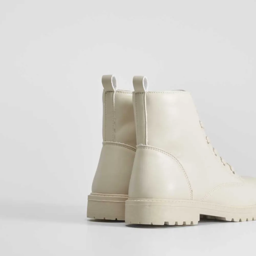Botín plano militar de color blanco de OH GIRL para niñas. Cierre de cordones y cremallera lateral.