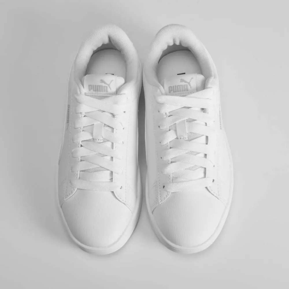 Tenis blanco con cordones de PUMA para niños. Modelo con diseño clásico y funcional.