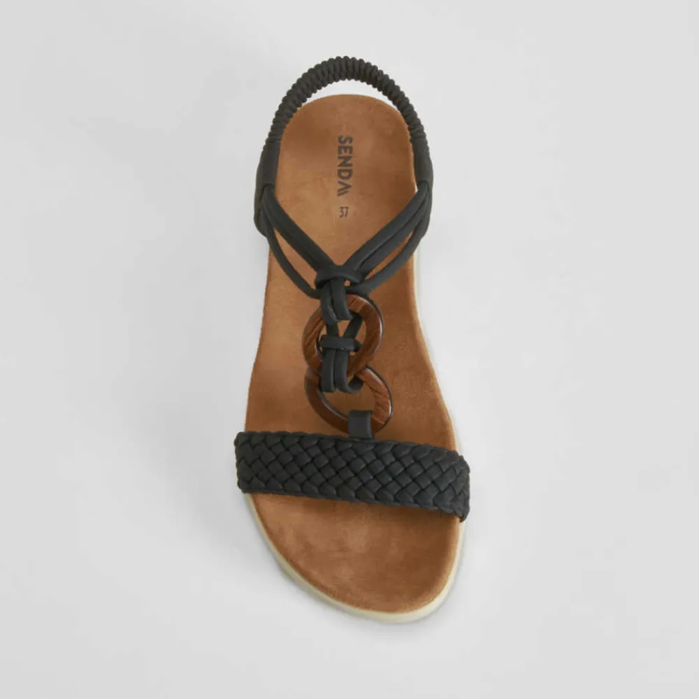 Online Sandalia cuña aros madera negra Mujer Sandalias Cuña