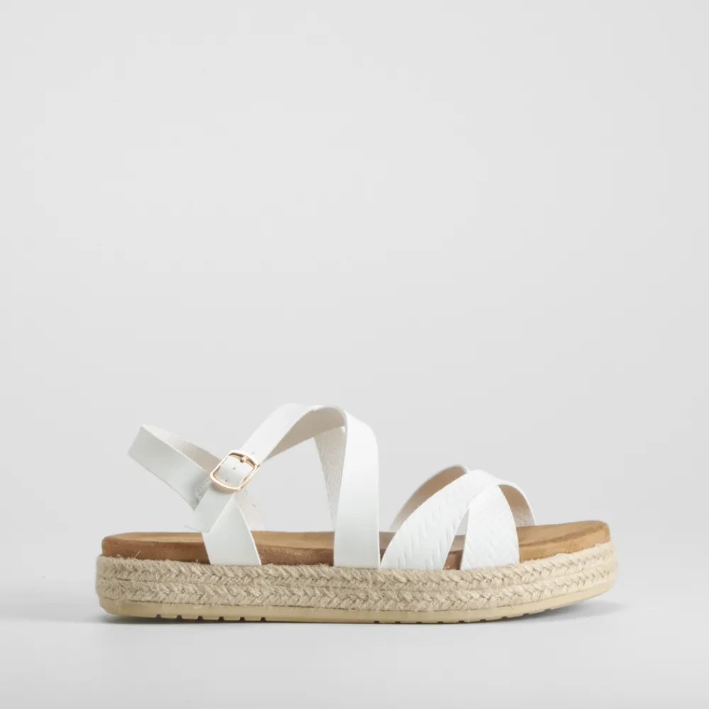 Online Sandalia de yute blanca Mujer Sandalias Planas|Espartos