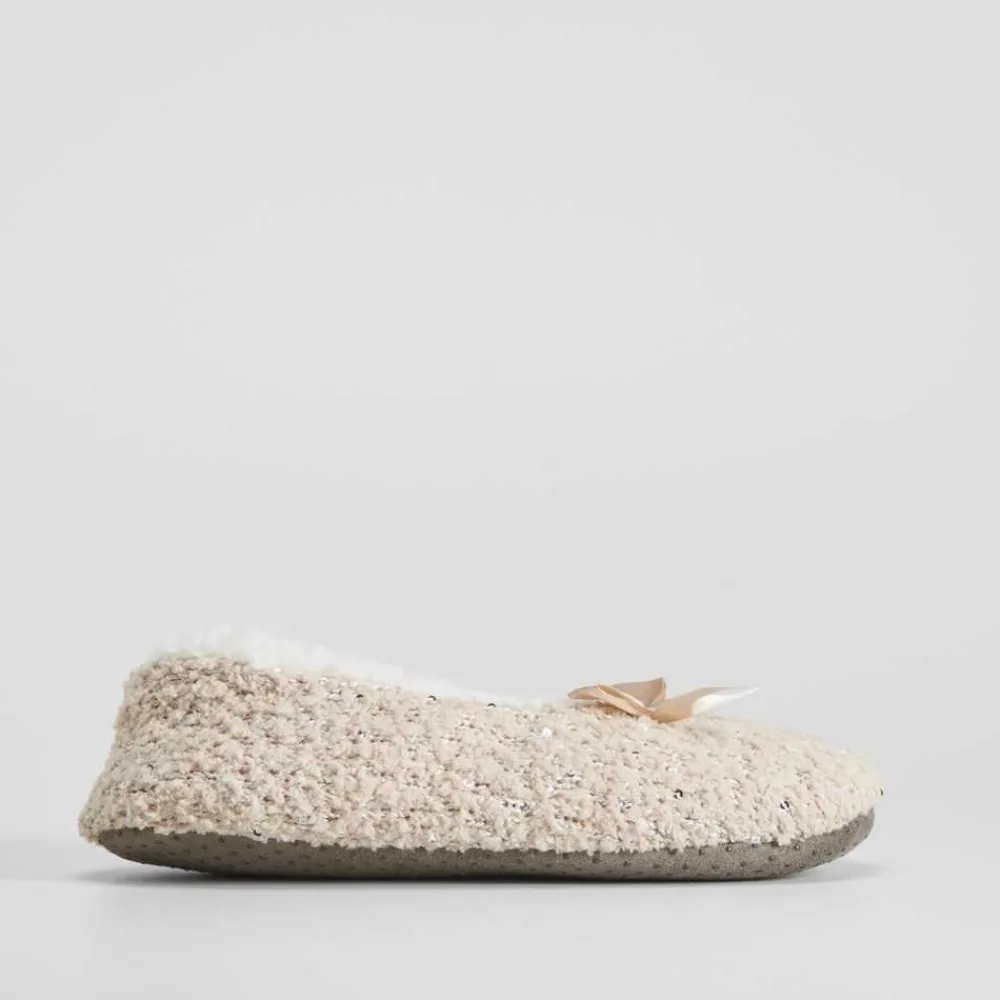 Online Slippers de mujer forradas beige lazo Mujer Calcetines|Zapatillas Casa