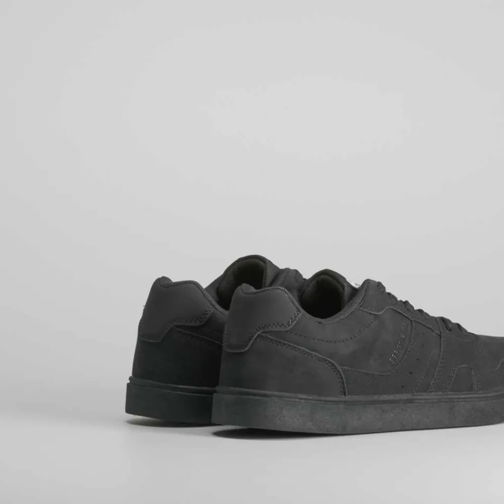 Zapatilla urbana de hombre de la marca NYC en color negro. Modelo con cordones y cosidos entonados.